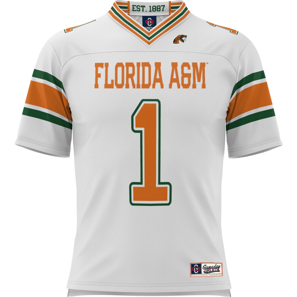 Show your pride with the Florida A&M Rattlers GameDay Greats Football Jersey in white. This limited replica fan edition offers authentic style and superior comfort, perfect for game days or everyday wear. Crafted with high-quality materials, it delivers durability and a sleek fit that stands out in the crowd. Elevate your collection by exploring more NCAA College Jerseys to support your favorite teams with passion and style.