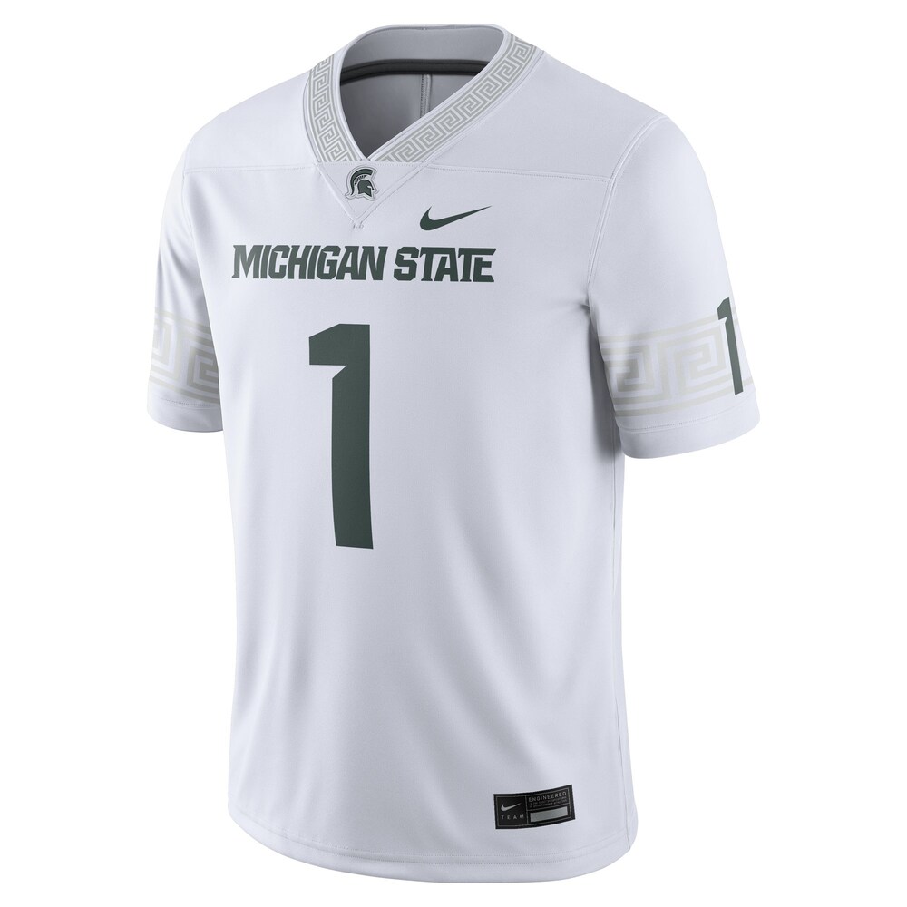 1 Michigan State Spartans Football Game Jersey – White, Limited Replica Fan Edition