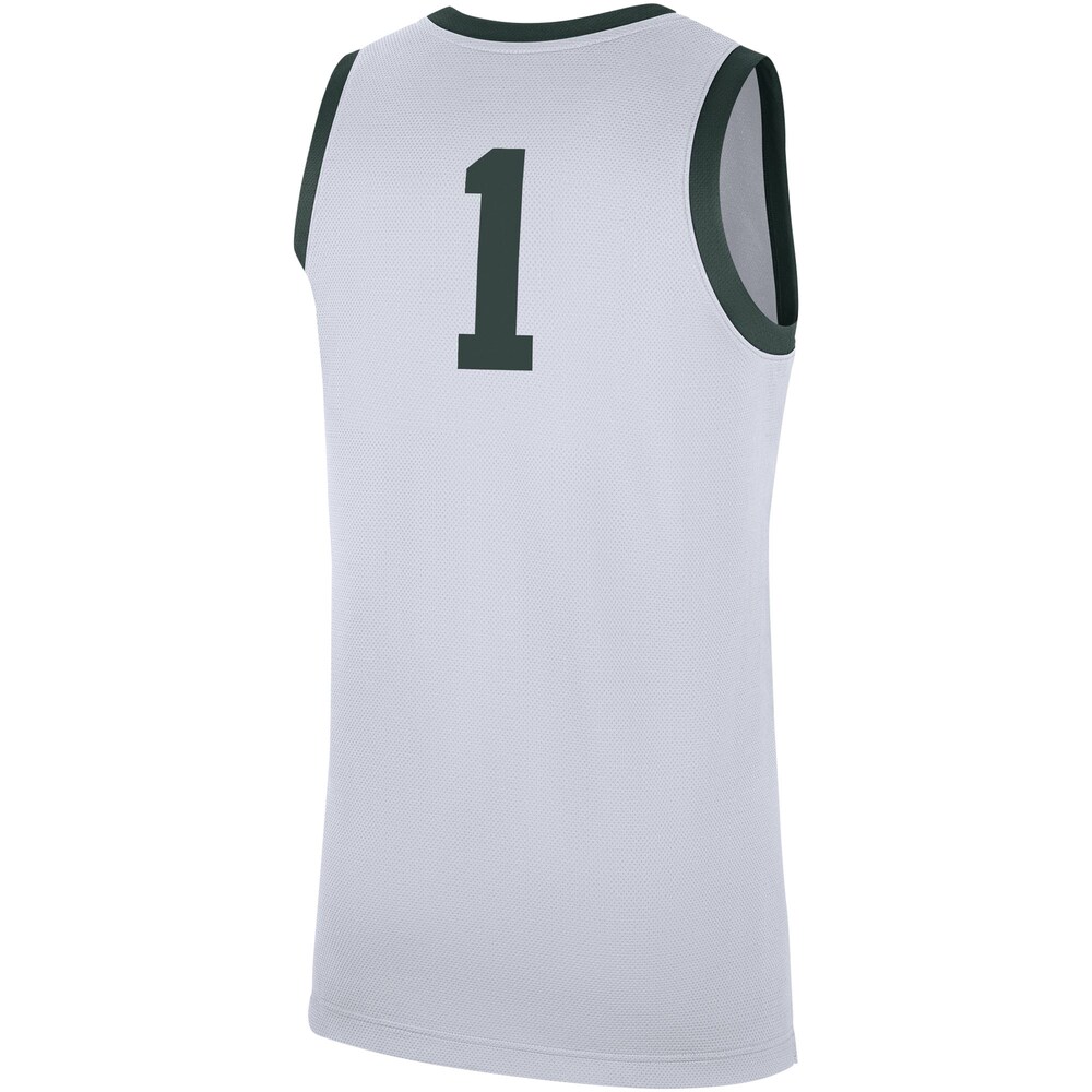 Show your Spartan pride with the 1 Michigan State Spartans Nike Replica Jersey in crisp white. Crafted for fans, this limited replica fan edition offers authentic style and superior comfort, perfect for game day or everyday wear. Made with breathable materials and detailed with iconic team logos, it’s a must-have addition to your collection. Explore more options in our NCAA College Jerseys selection to complete your fan wardrobe.