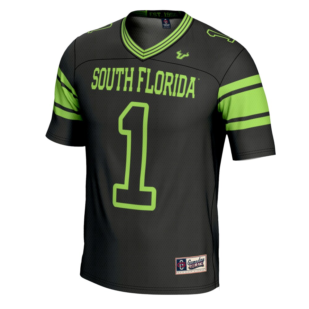 Show your team pride with the 1 South Florida Bulls GameDay Greats Football Jersey in sleek black. This Limited Replica Fan Edition offers authentic style, premium comfort, and durable quality—perfect for game day or everyday wear. Stand out in the crowd while supporting your Bulls with a jersey designed for true fans. Explore more spirited options in our NCAA College Jerseys collection and elevate your fan gear today.