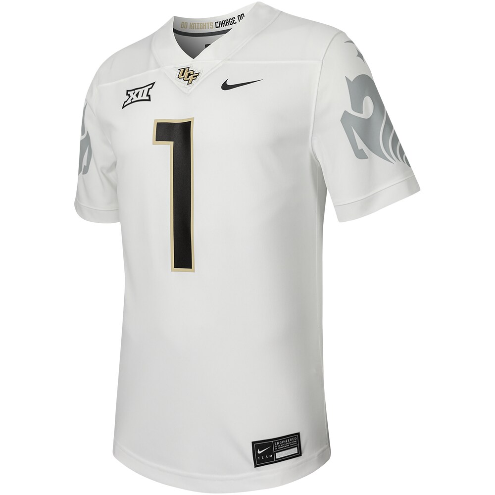 Show your UCF Knights pride with the Nike Untouchable Football Replica Jersey in classic white. This limited replica fan edition delivers authentic style and unbeatable comfort, perfect for game day or everyday wear. Crafted with premium materials, it offers durability and breathability to keep you cool while cheering on your team. Complete your fan collection with this standout piece from our NCAA College Jerseys lineup and experience the spirit of victory.