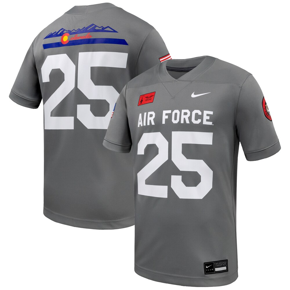 Show your team pride with the 25 Air Force Falcons Nike APLS Fighting Falcon Collection Football Game Jersey in sleek gray. This limited replica fan edition offers authentic design, premium Nike quality, and unmatched comfort for game day or everyday wear. Perfect for dedicated fans seeking style and durability. Elevate your collection with this must-have jersey and explore more options in our NCAA College Jerseys selection today.