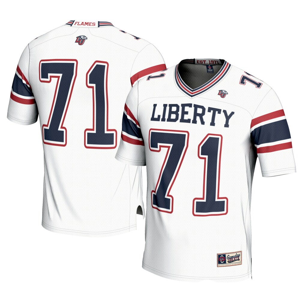 Show your team pride with the 71 Liberty Flames GameDay Greats Football Jersey in crisp white. This limited replica fan edition offers authentic style, premium comfort, and durable fabric perfect for game day excitement. Featuring detailed team logos and a classic fit, it’s an essential addition to any fan’s wardrobe. Explore more passionate fan gear in our NCAA College Jerseys collection and elevate your game day experience with pride and style.