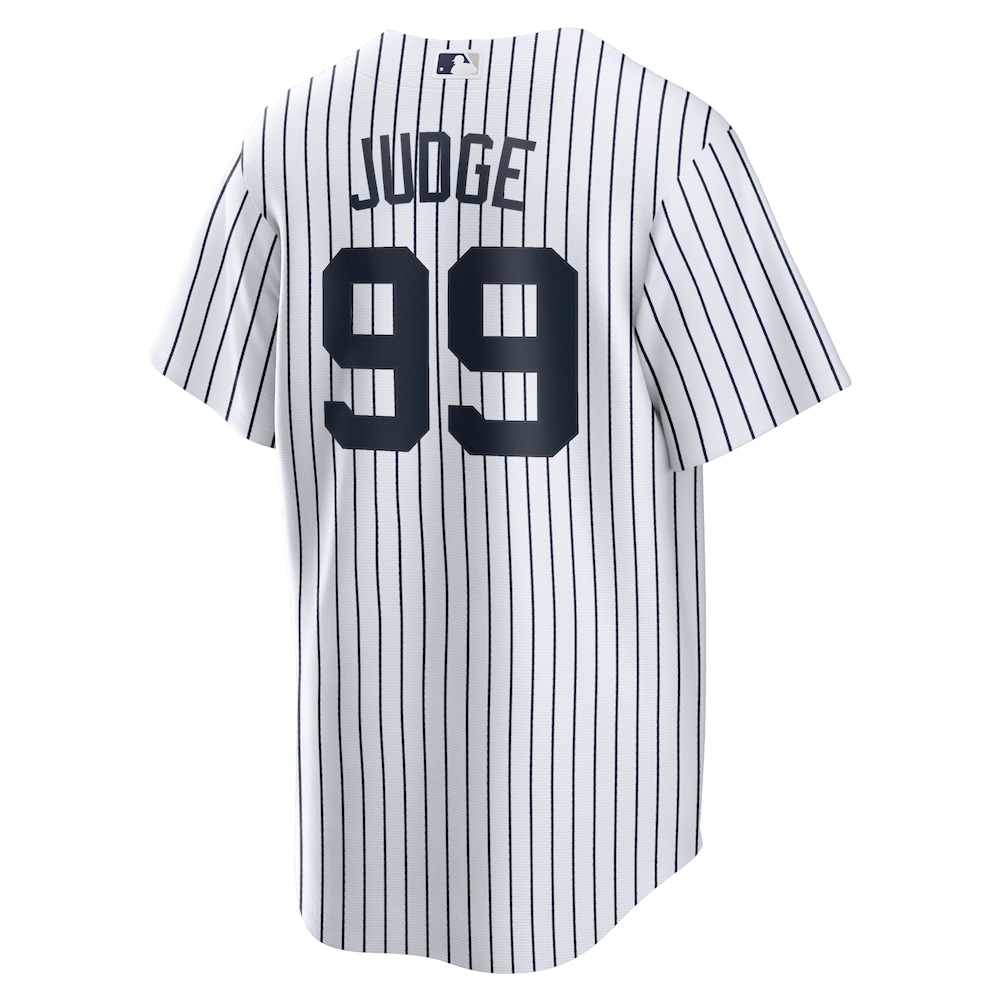 Celebrate your fandom with the Aaron Judge New York Yankees Home Replica Player Name Jersey in classic white. This Limited Replica Fan Edition offers authentic design, superior comfort, and durable fabric—perfect for game day or everyday wear. Show your support in style and join fellow fans by exploring our full selection of MLB Jerseys to complete your collection.