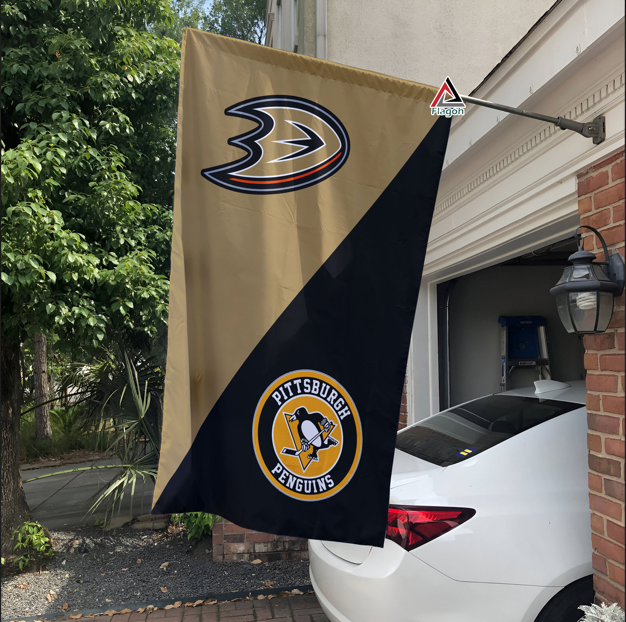 Anaheim Ducks vs Pittsburgh Penguins House Divided Flag, NHL House Divided Flag