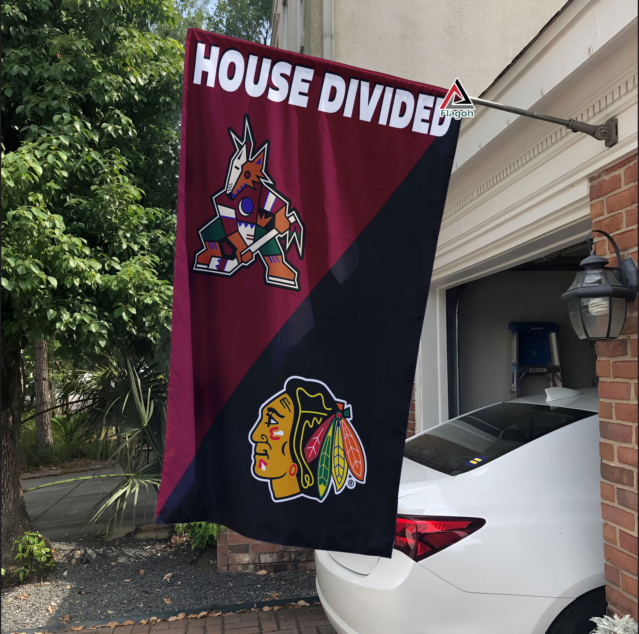 Arizona Coyotes vs Chicago Blackhawks House Divided Flag, NHL House Divided Flag