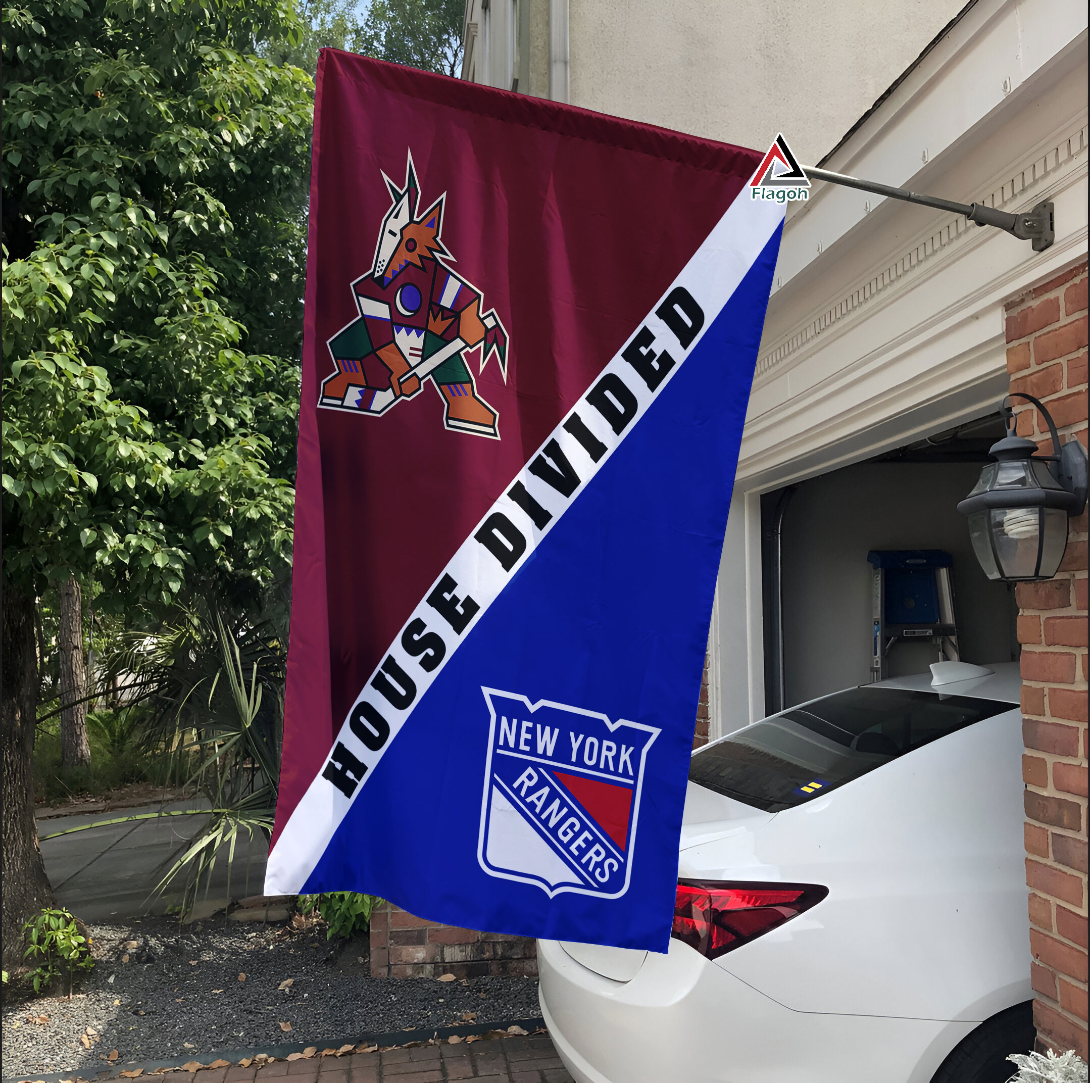 Arizona Coyotes vs New York Rangers House Divided Flag, NHL House Divided Flag