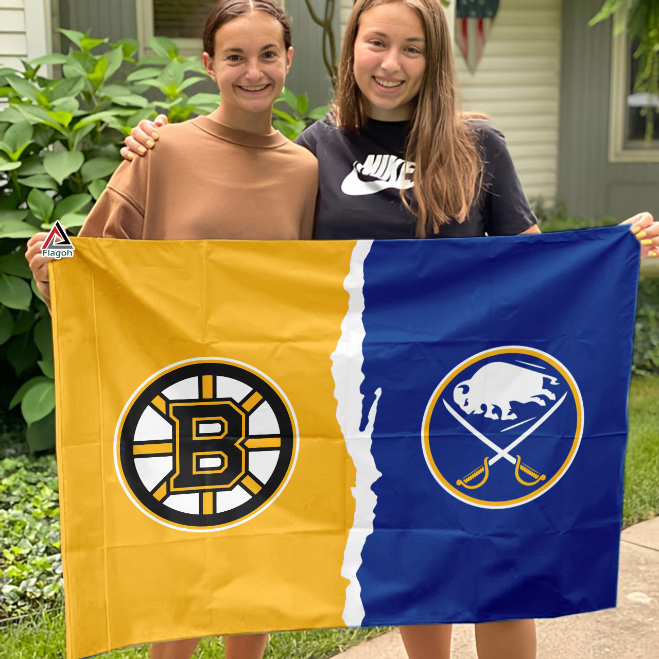 Snowbelt showdown! This Bruins vs Sabres house divided flag captures the intensity of a rivalry forged in cold winters and passionate fanbases. One side boasts the ferocious Bruins bear, a symbol of Boston’s relentless pursuit of victory. Flip the flag, and you’ll find the charging Buffalo Sabres logo, a reminder of their speed and offensive prowess. Now you can show your support for both teams, even if your household can’t agree on who reigns supreme in the Northeast. This flag is the perfect conversation starter and a testament to the exciting hockey that emerges from cold-weather cities.