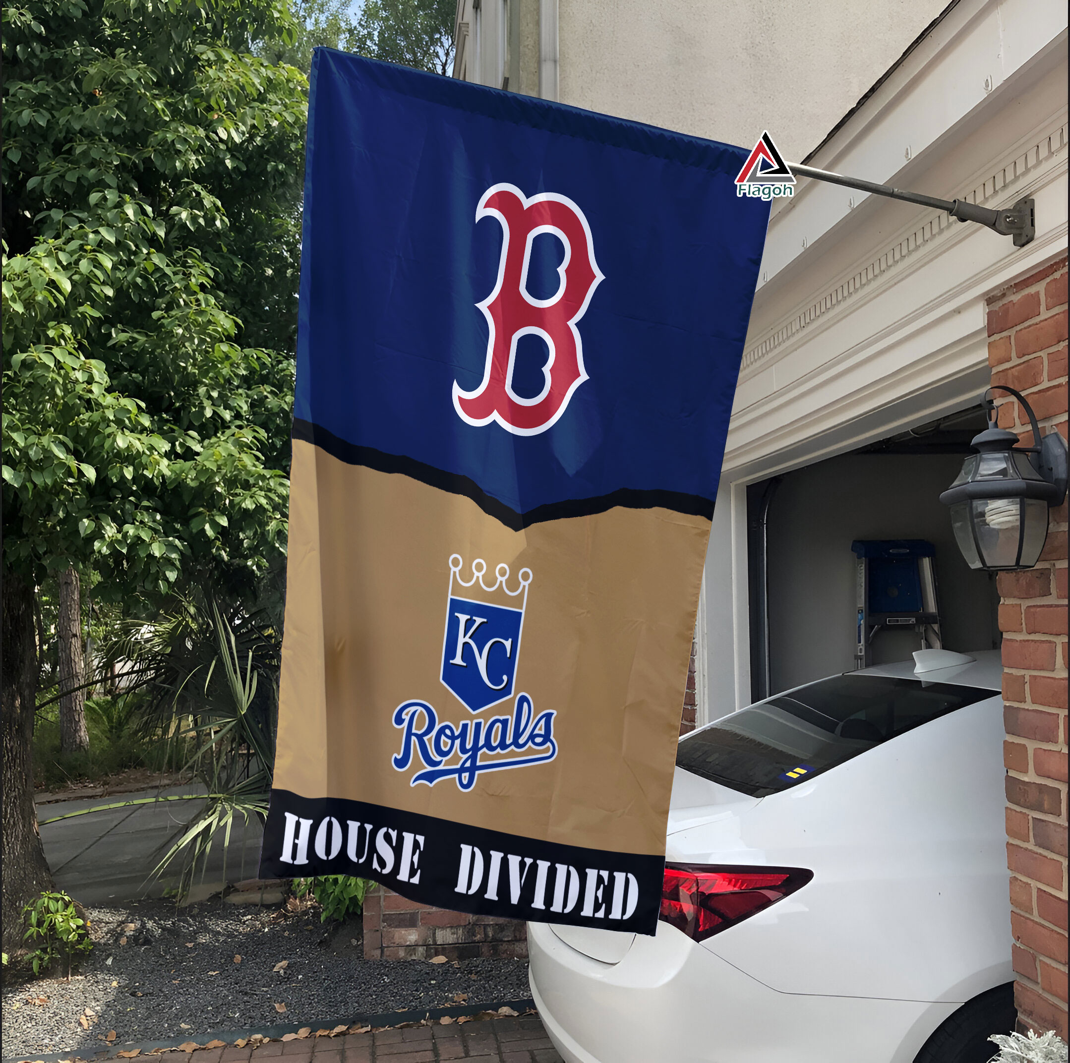 Boston Red Sox vs Kansas City Royals House Divided Flag, MLB House Divided Flag
