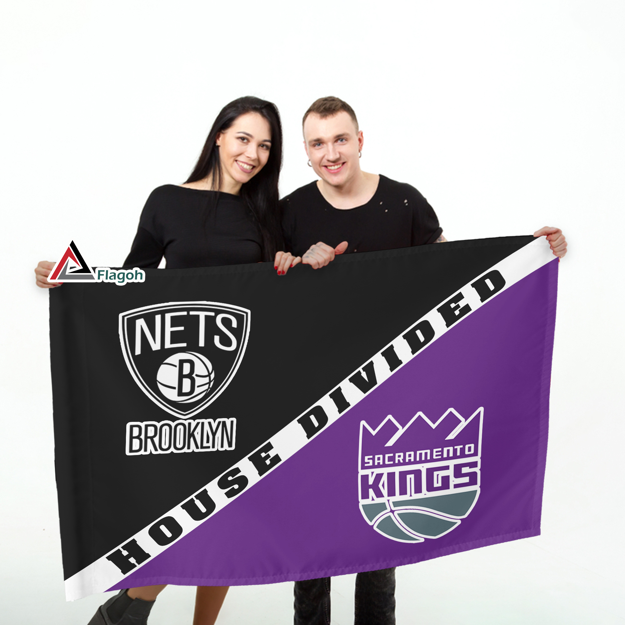 Hoops fans, show your love for the Brooklyn Nets and Sacramento Kings with this unique house divided flag!