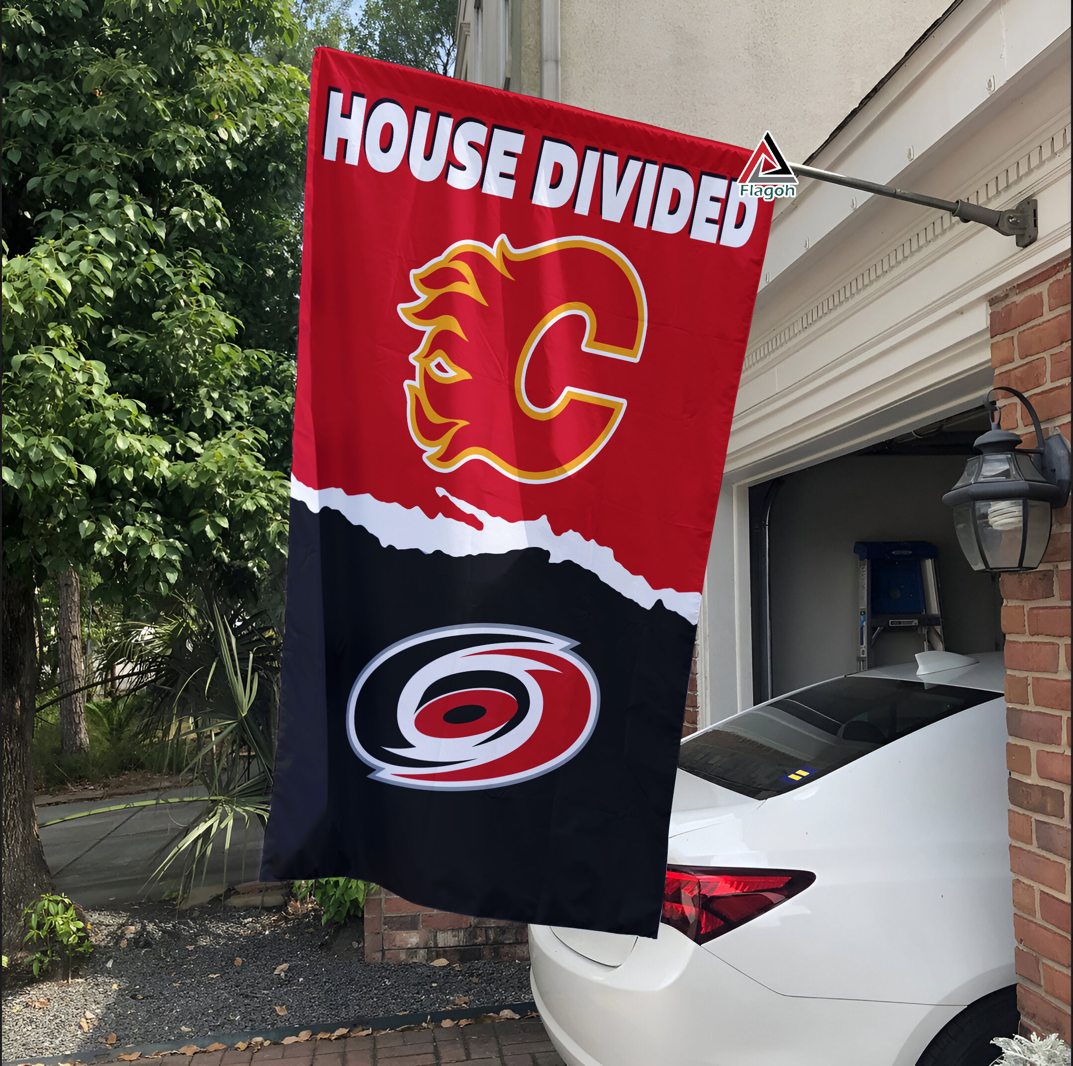 Calgary Flames vs Carolina Hurricanes House Divided Flag, NHL House Divided Flag