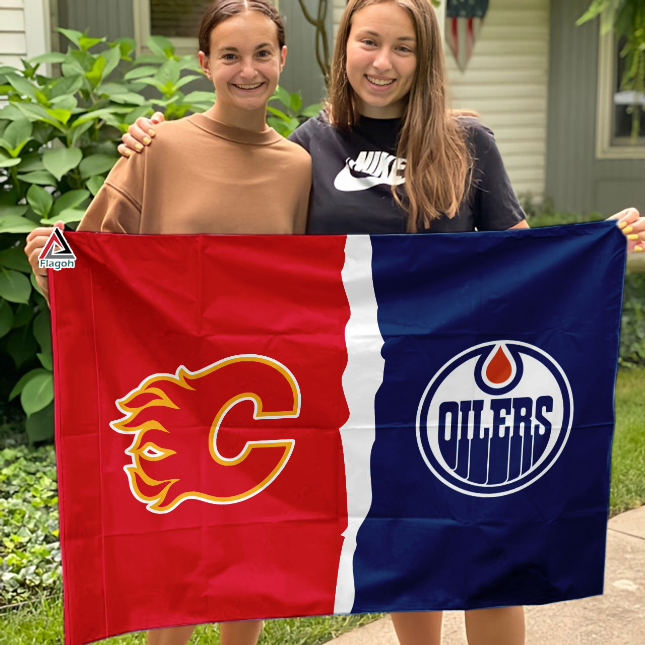 Calgary Flames vs Edmonton Oilers House Divided Flag, NHL House Divided Flag