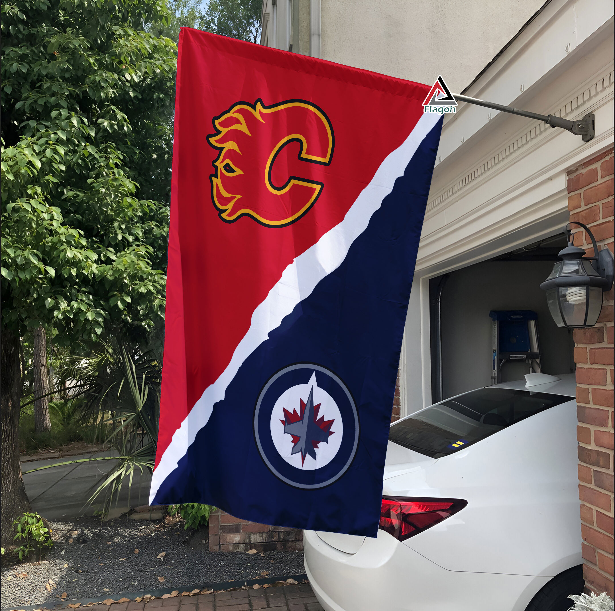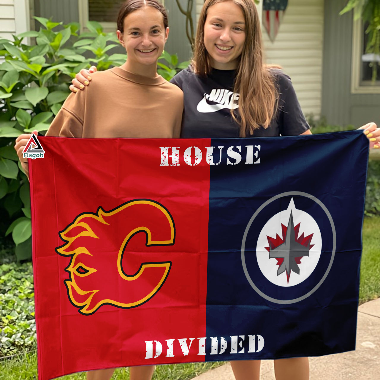 Calgary Flames vs Winnipeg Jets House Divided Flag, NHL House Divided Flag