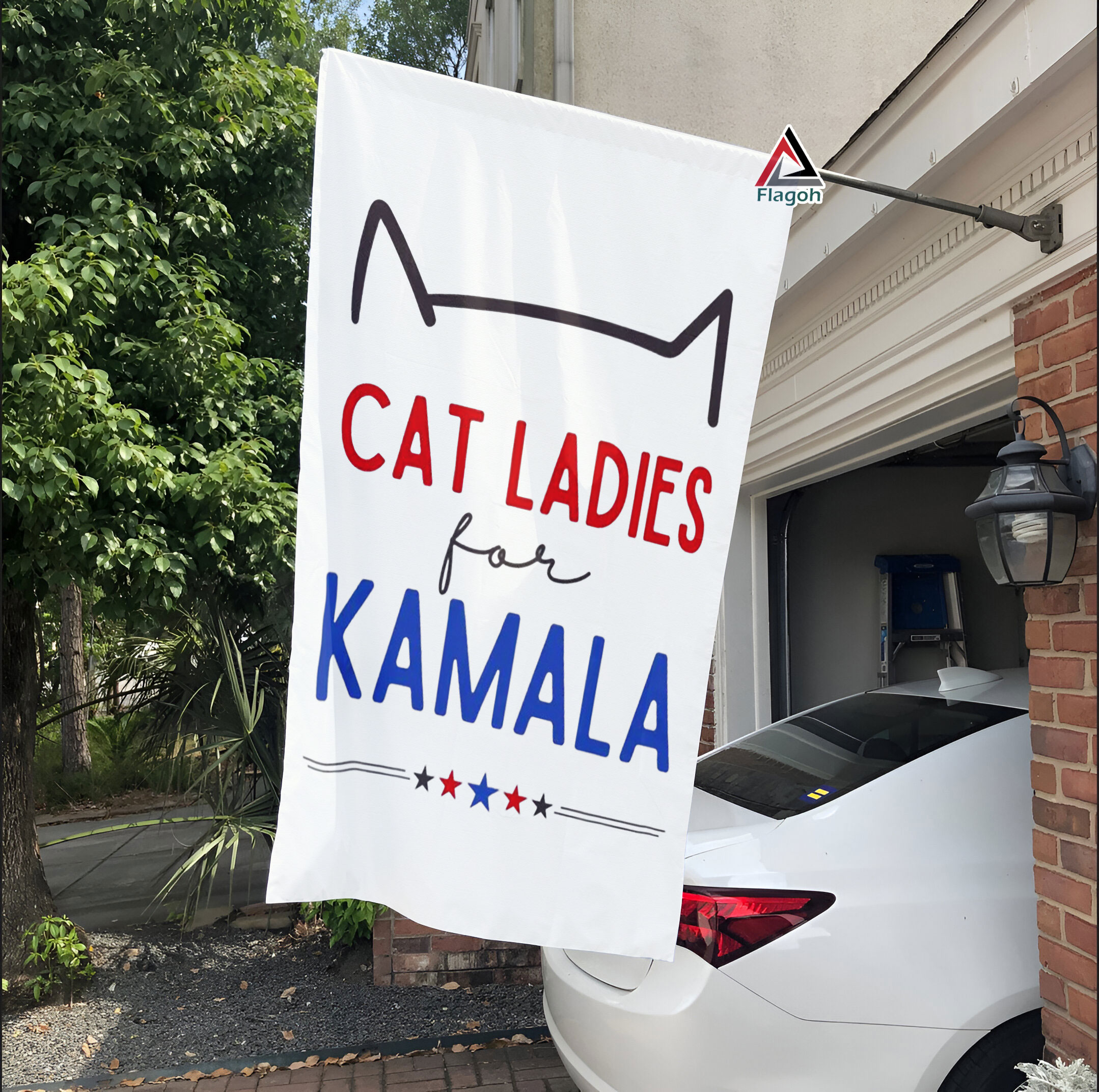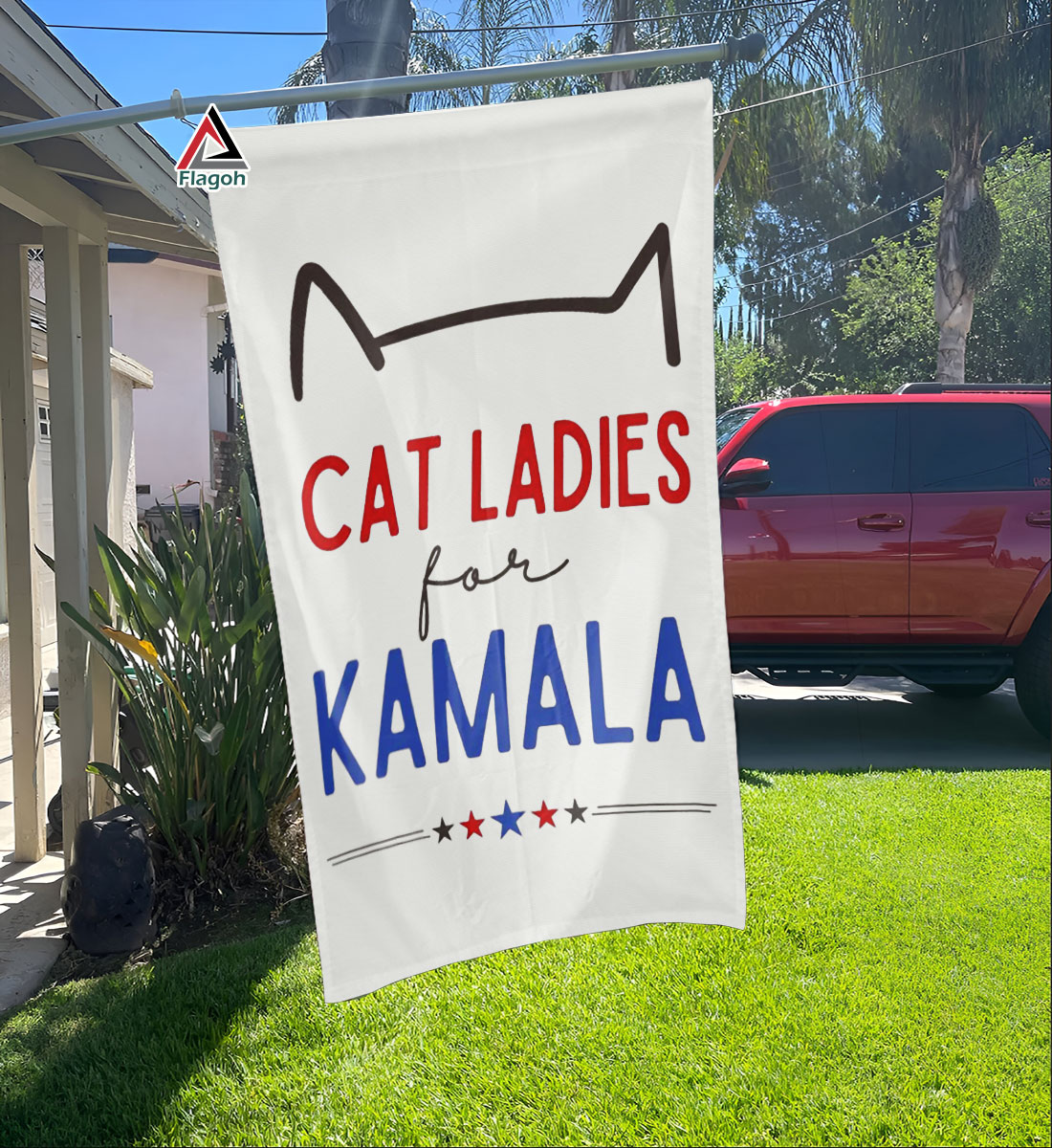 Cat Ladies For Kamala Flag, Kamala Harris 2024 President Garden Flag, Kamala Rally House Flag