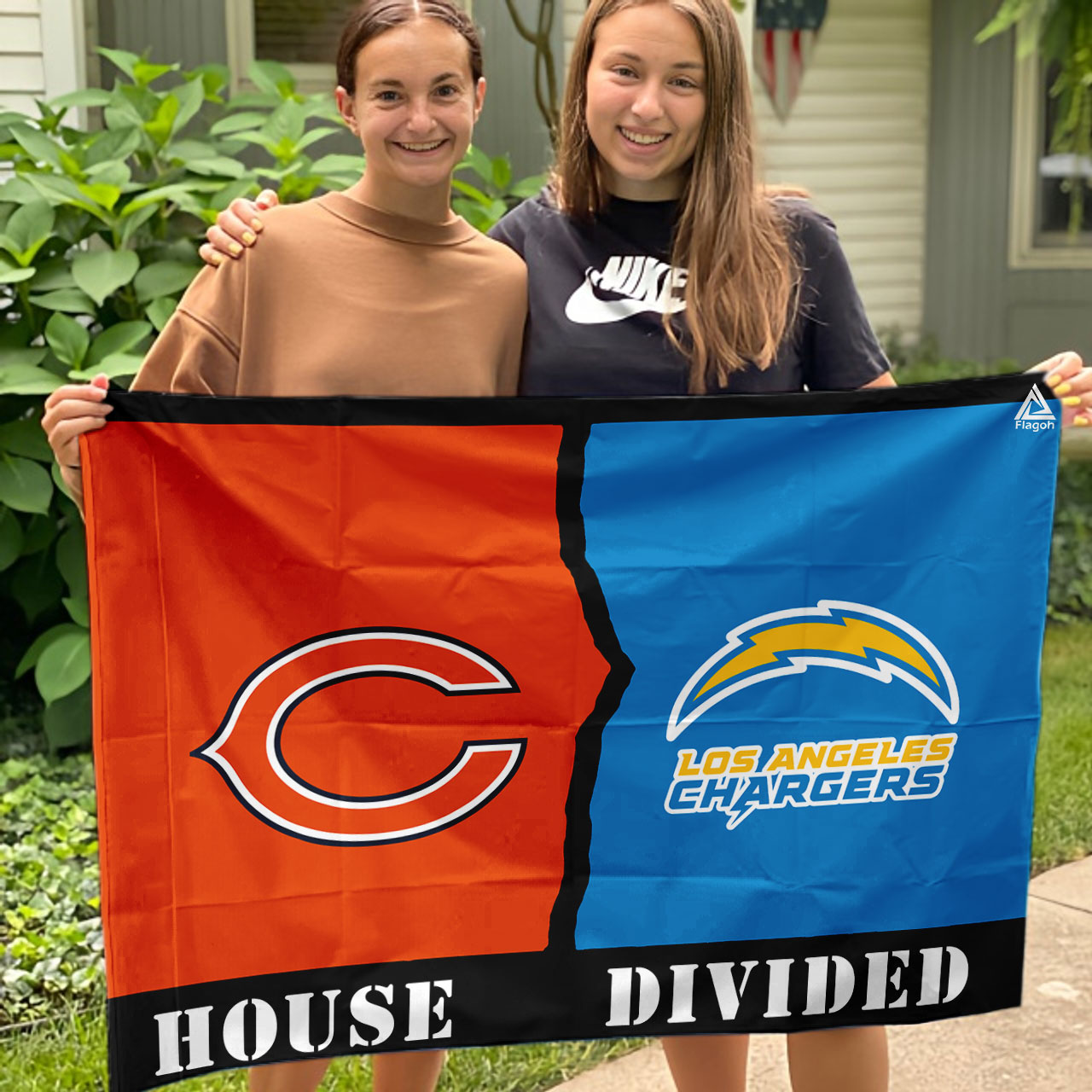 Chicago Bears vs Los Angeles Chargers House Divided Flag, NFL House Divided Flag