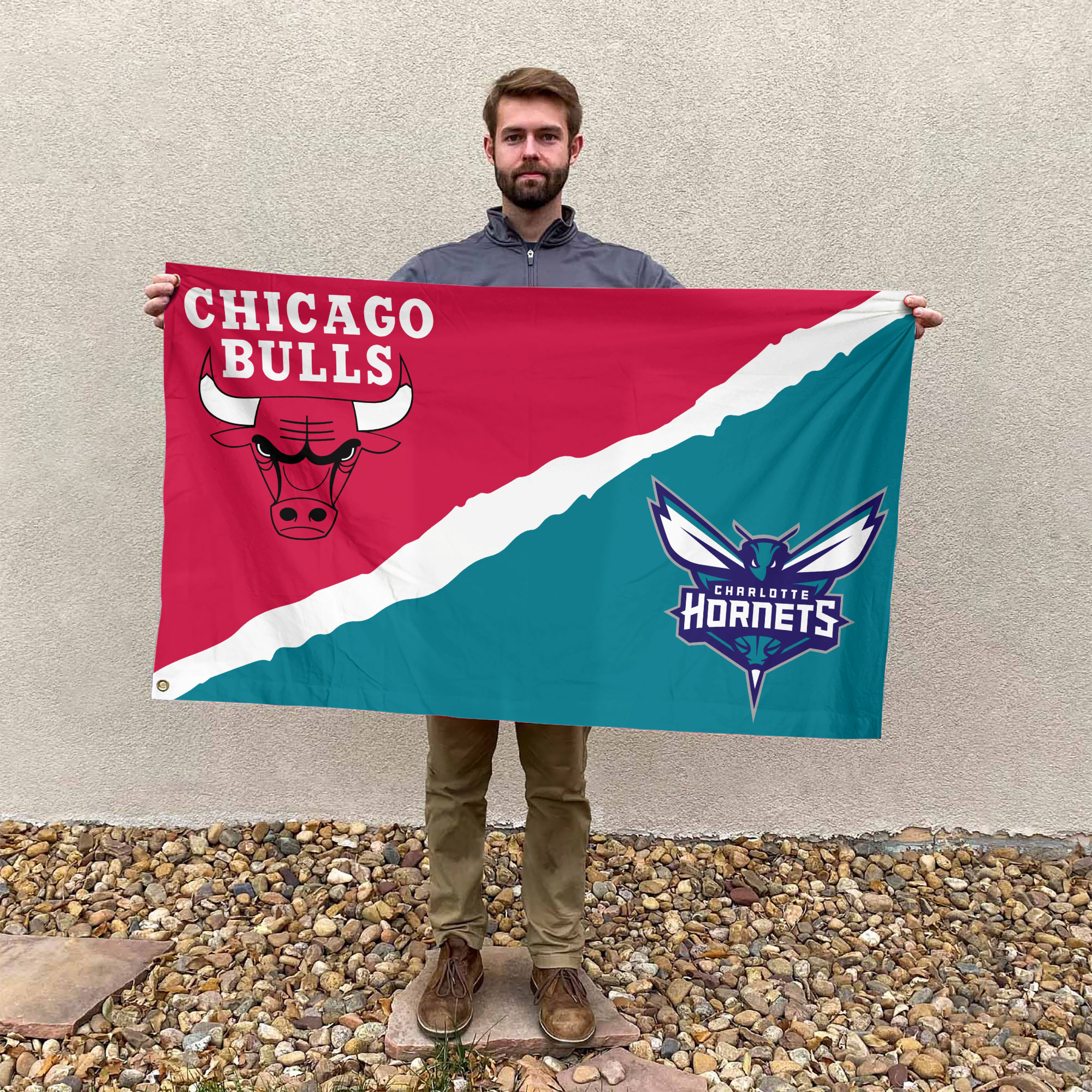 Striking Design: Featuring bold, vivid graphics of both the Chicago Bulls and Charlotte Hornets logos, the flag captures the intense competitive spirit between these two iconic NBA teams.