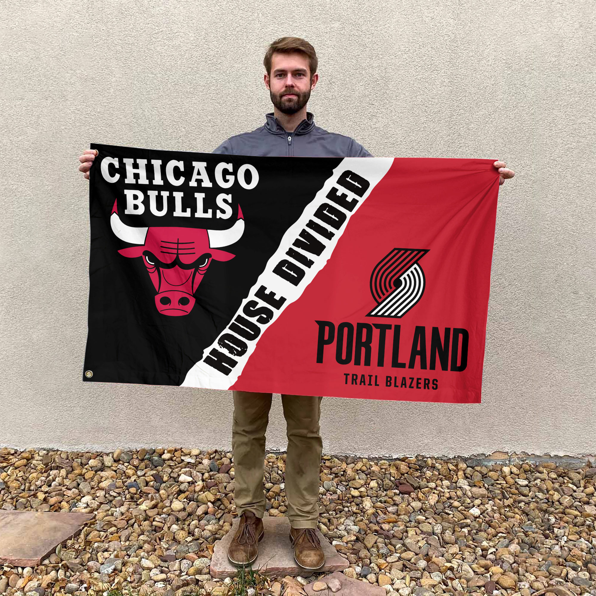 Crafted from durable, weather-resistant materials, this House Divided Flag is designed to withstand outdoor elements while maintaining vibrant colors and sharp details. Featuring the official logos and colors of both the Chicago Bulls and Portland Trail Blazers, it visually represents the ultimate basketball rivalry.