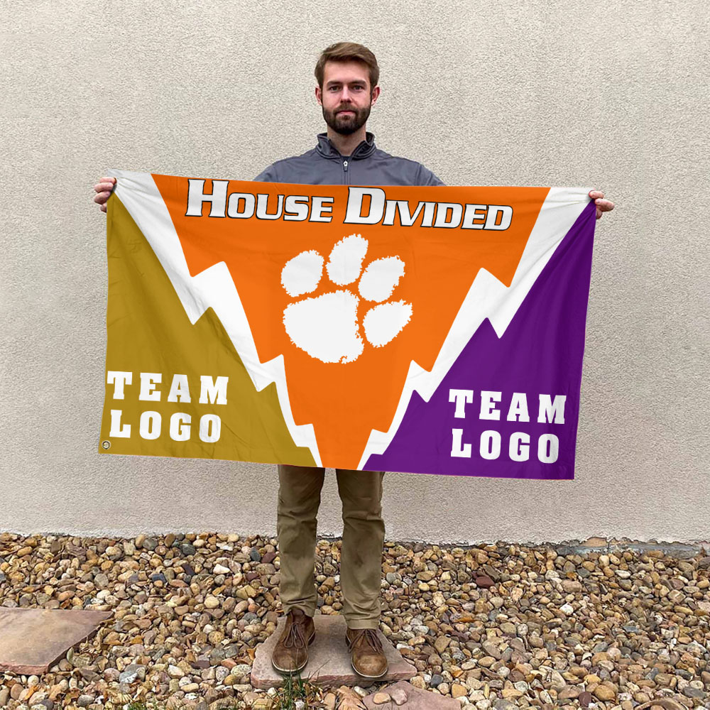 Clemson Tigers vs Custom Team House Divided Flag Personalized Spirit Flag