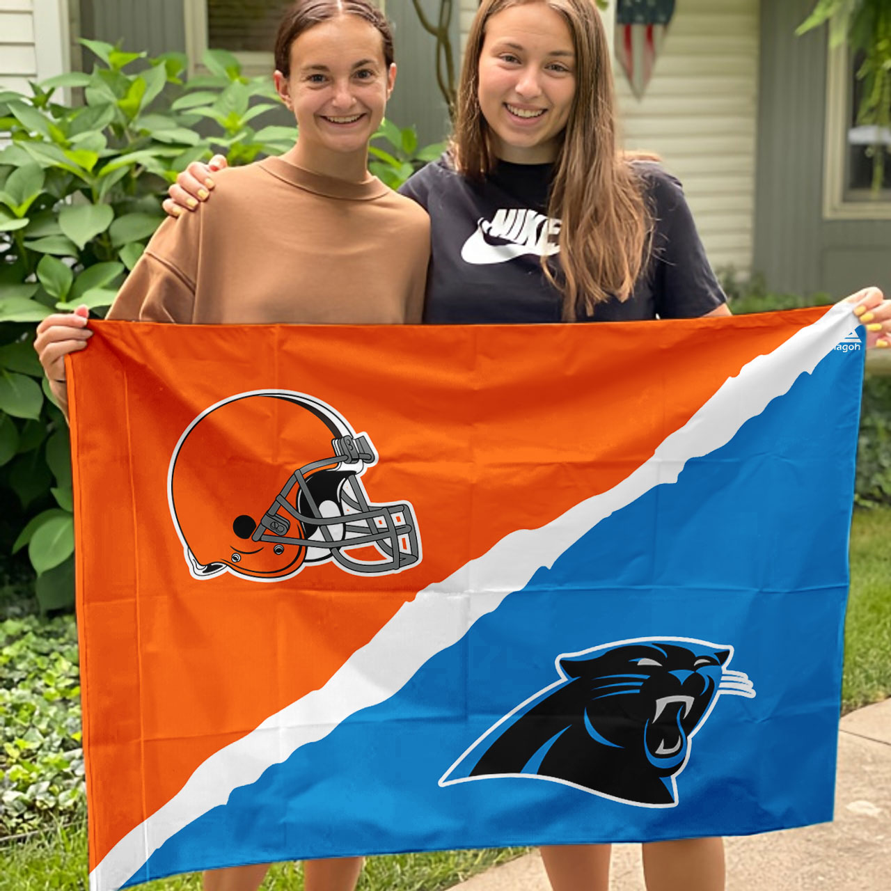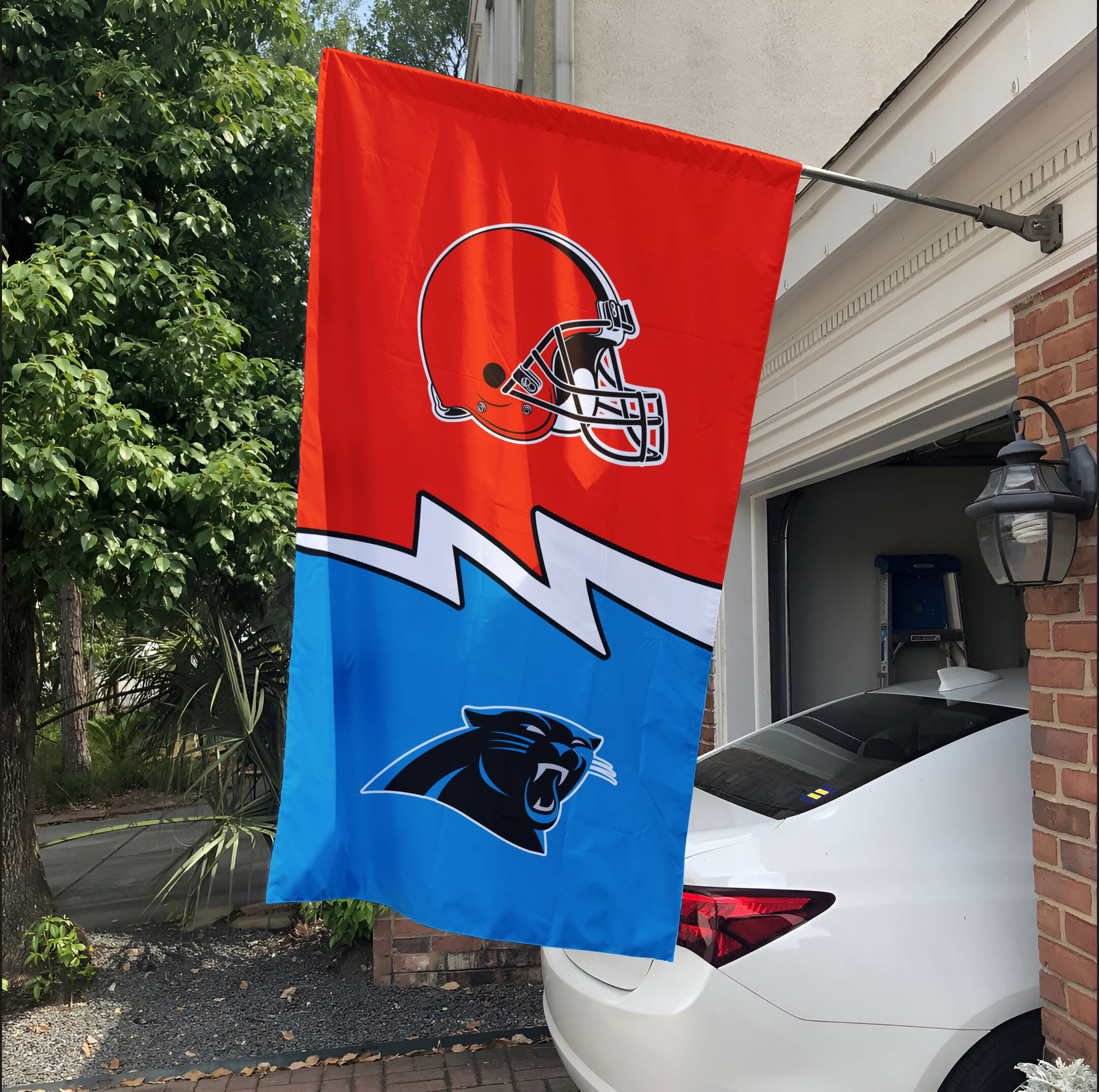 – Divided households: Can’t decide between cheering for the ferocious Browns or the energetic Panthers? This flag is a great way to show love for both teams!