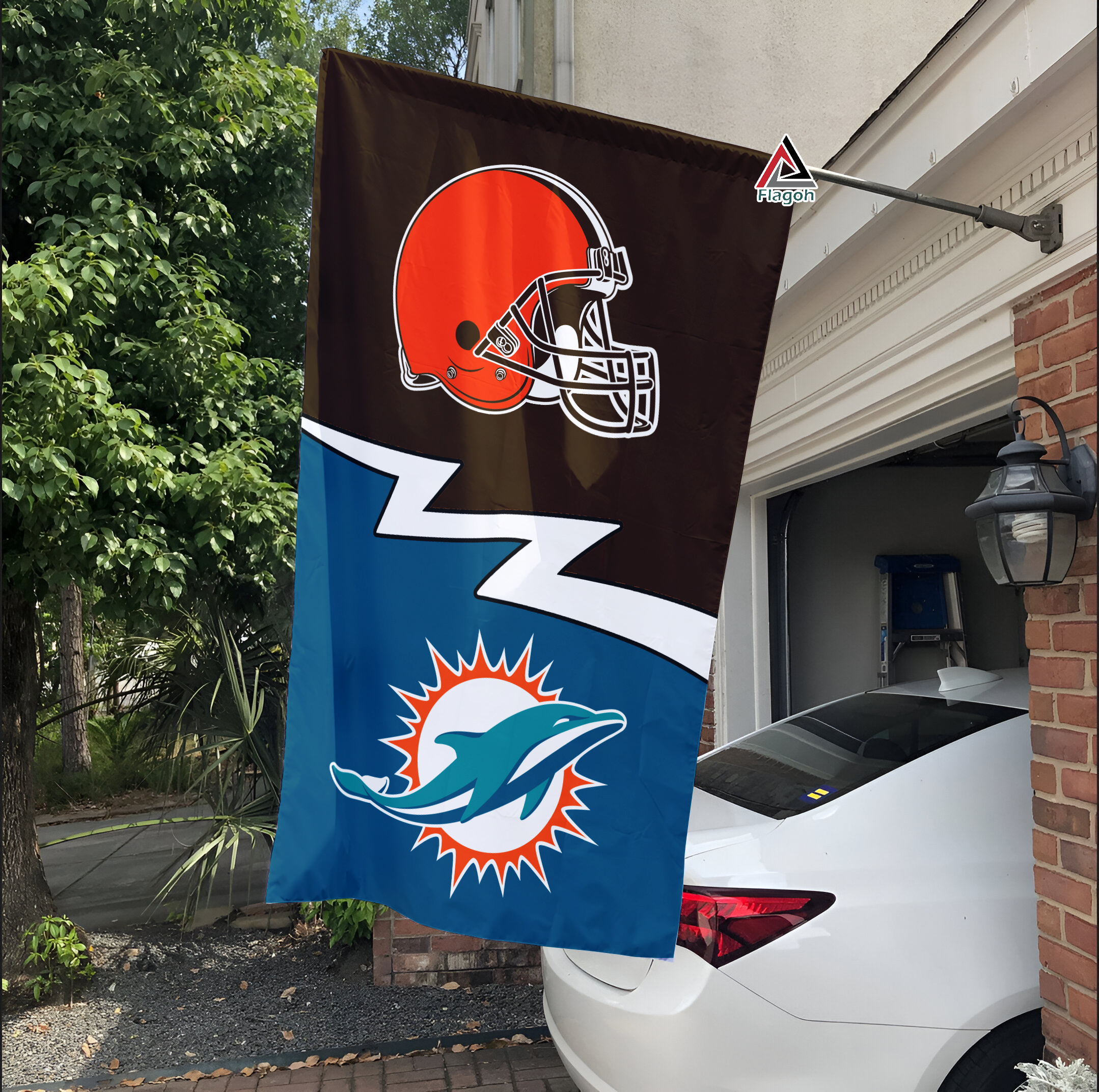 Cleveland Browns vs Miami Dolphins House Divided Flag, NFL House Divided Flag