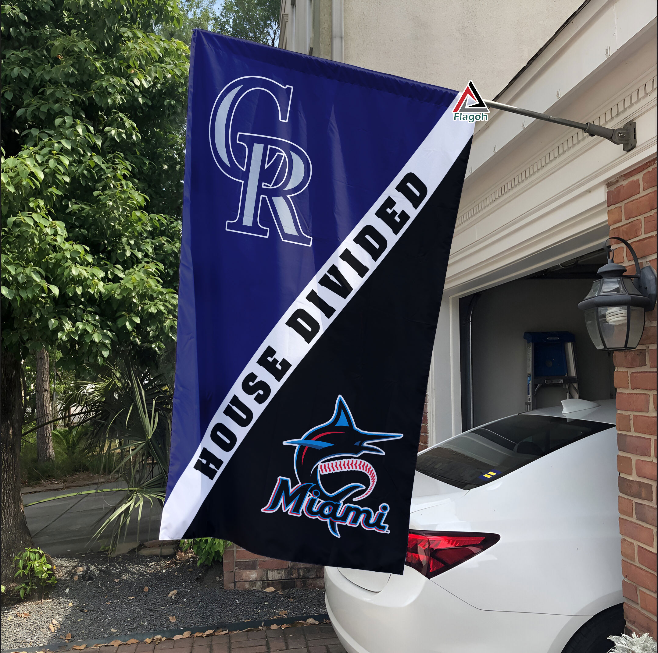 Colorado Rockies vs Miami Marlins House Divided Flag, MLB House Divided Flag