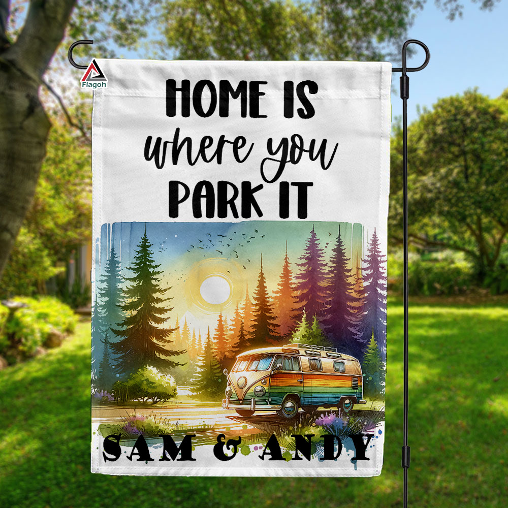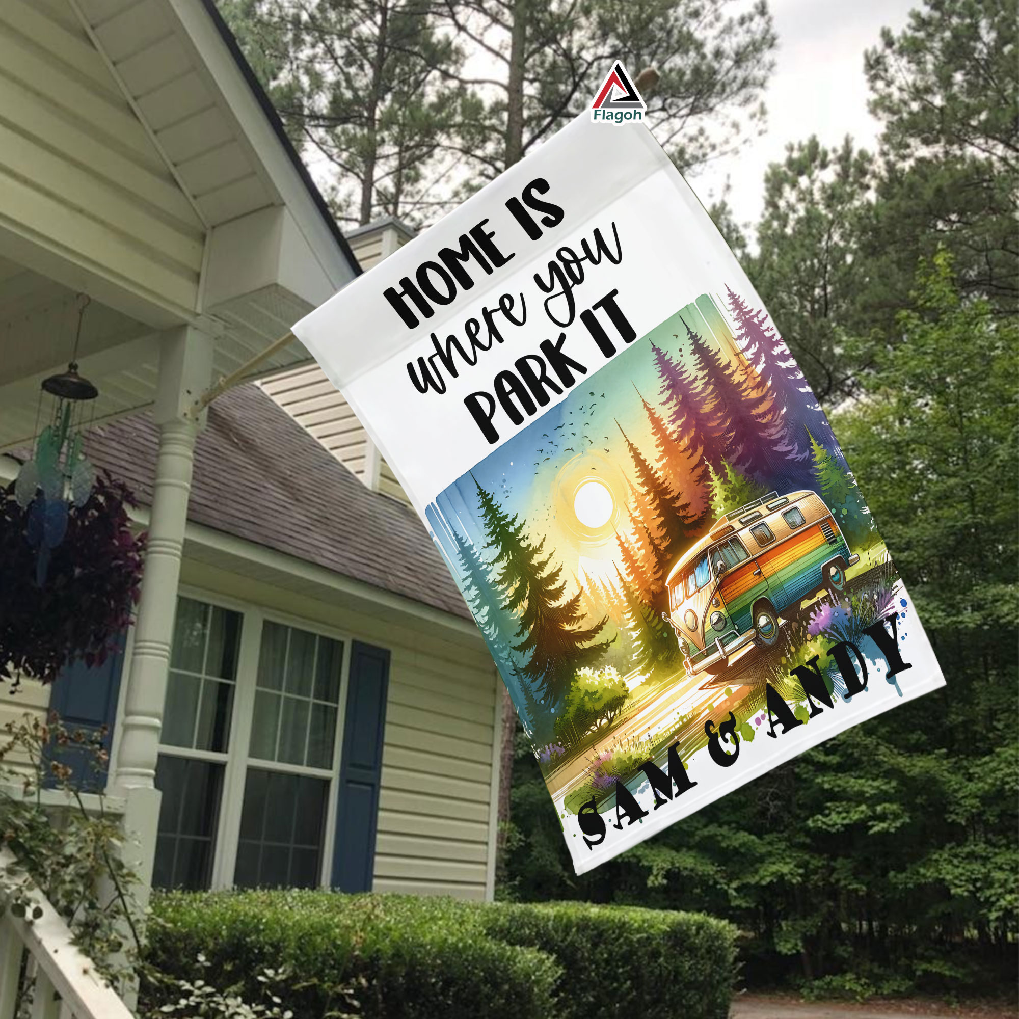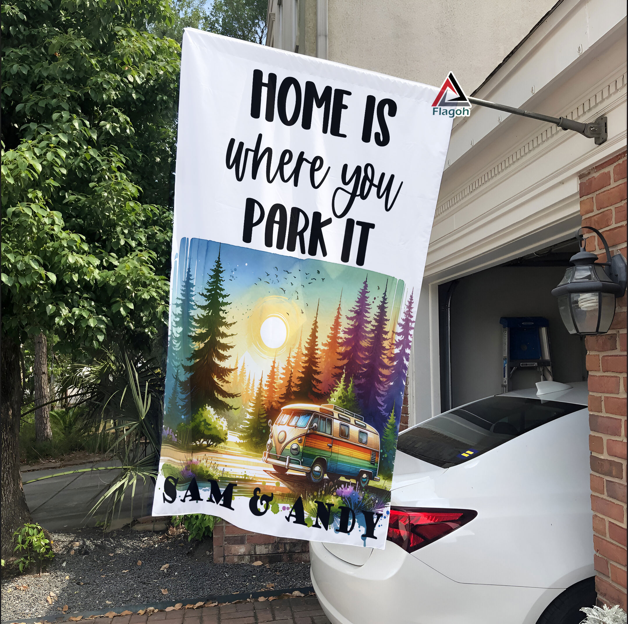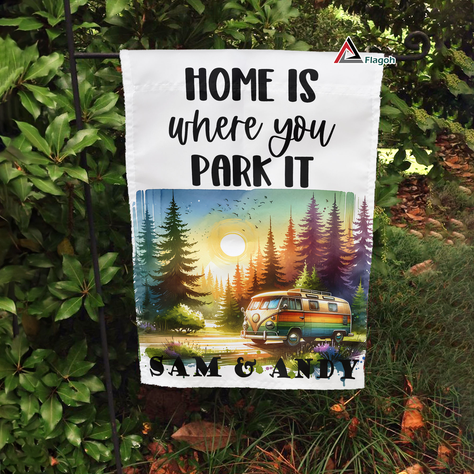 Custom Camper Flag, Personalized Camping Van Home Is Where You Park It Garden Flag