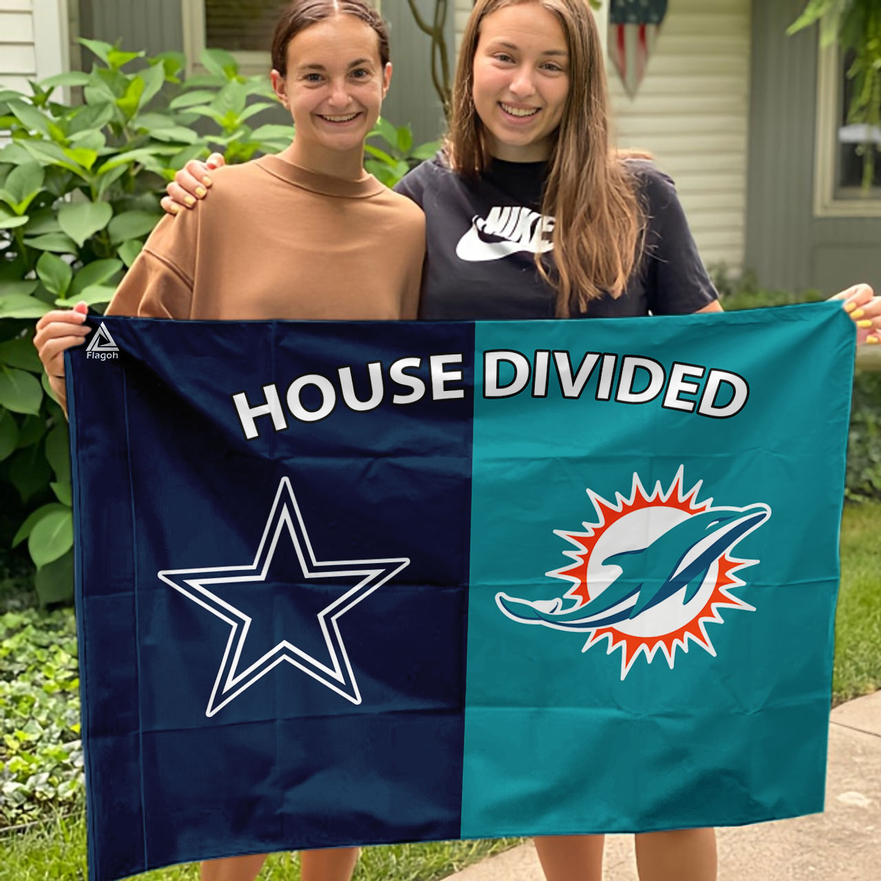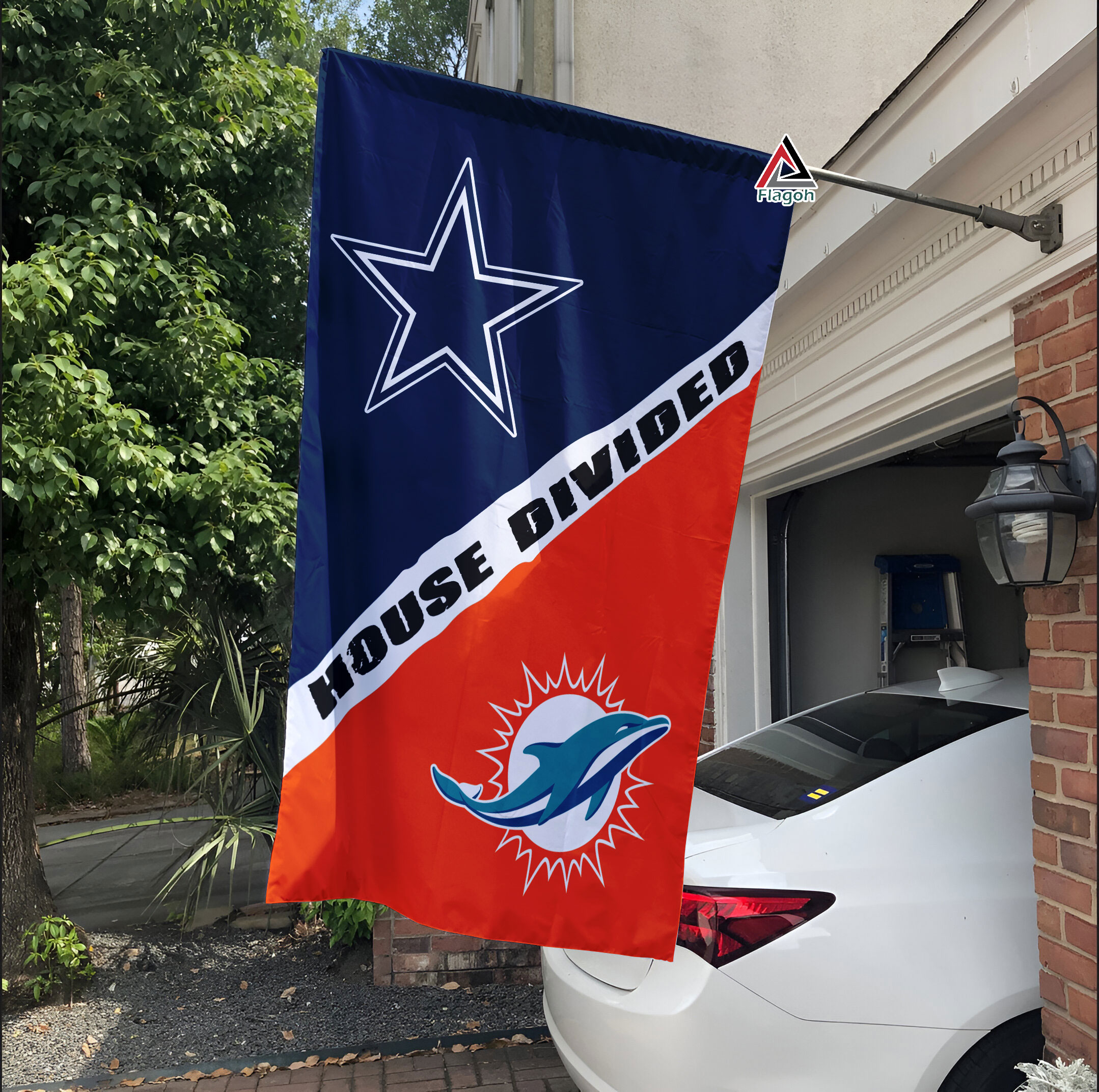 Dallas Cowboys vs Miami Dolphins House Divided Flag, NFL House Divided Flag