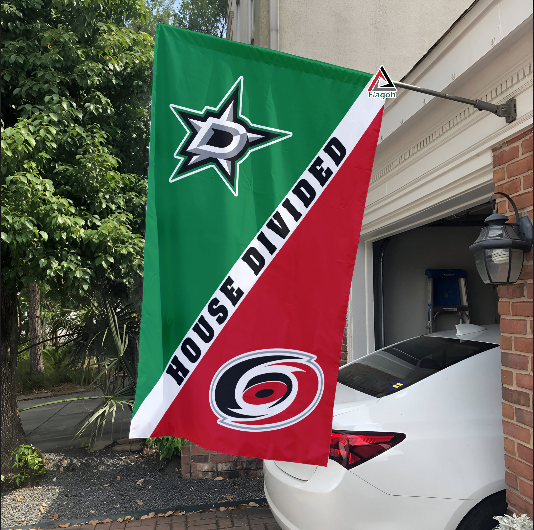 Dallas Stars vs Carolina Hurricanes House Divided Flag, NHL House Divided Flag