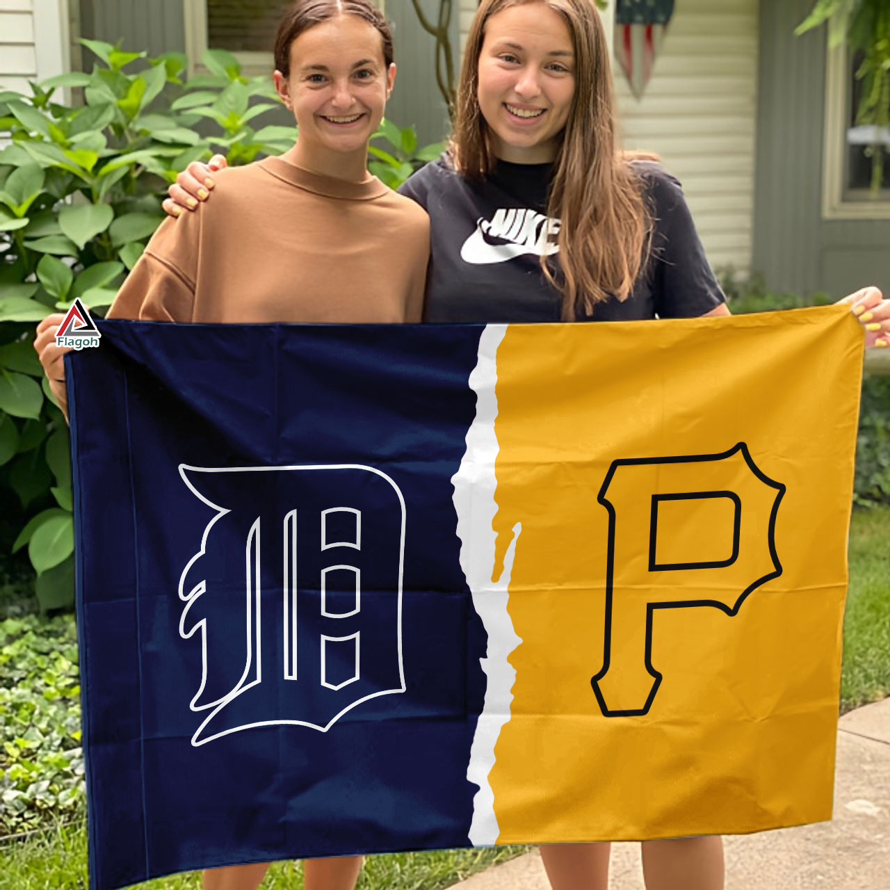 Detroit Tigers vs Pittsburgh Pirates House Divided Flag, MLB House Divided Flag