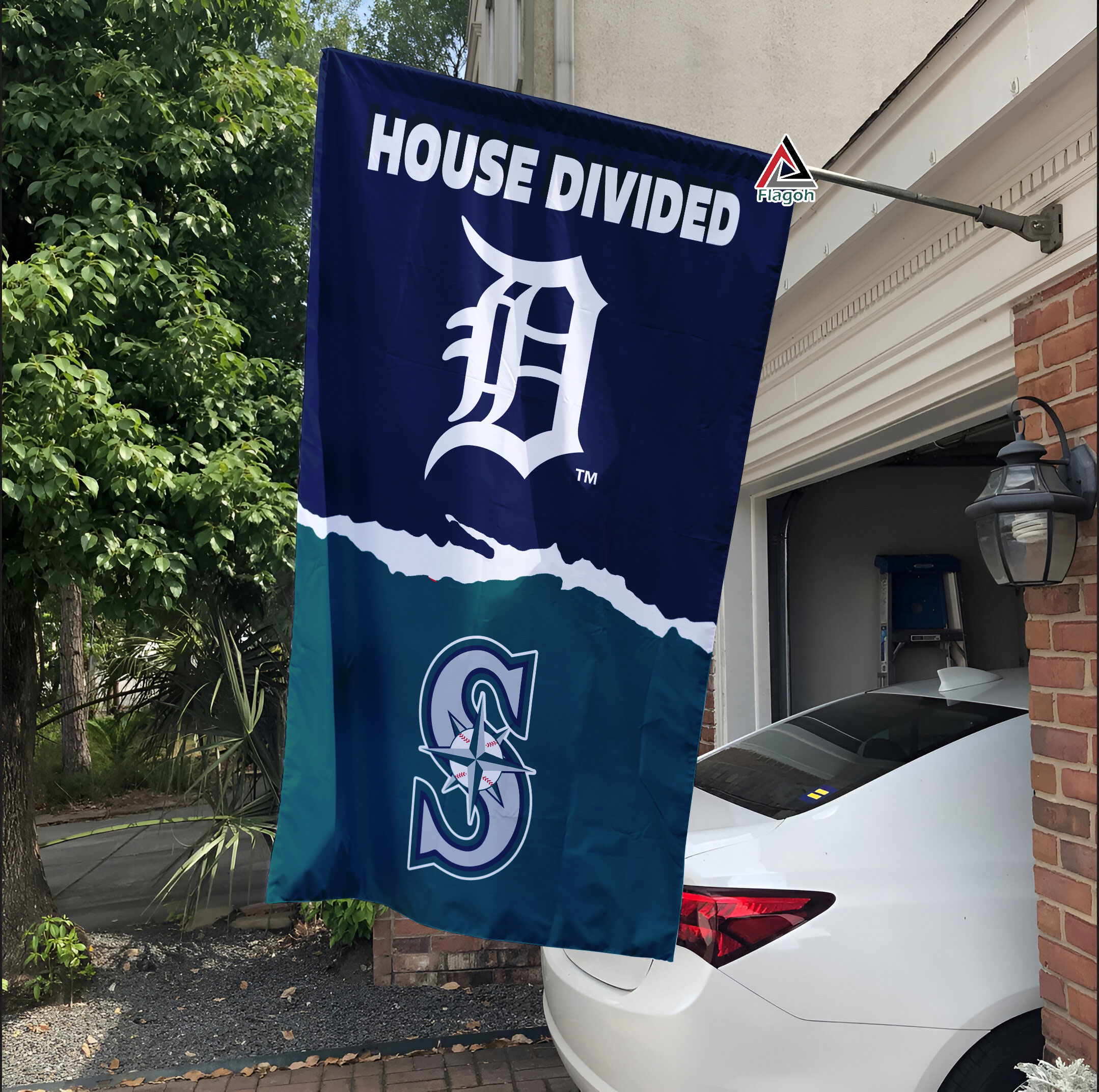 Detroit Tigers vs Seattle Mariners House Divided Flag, MLB House Divided Flag