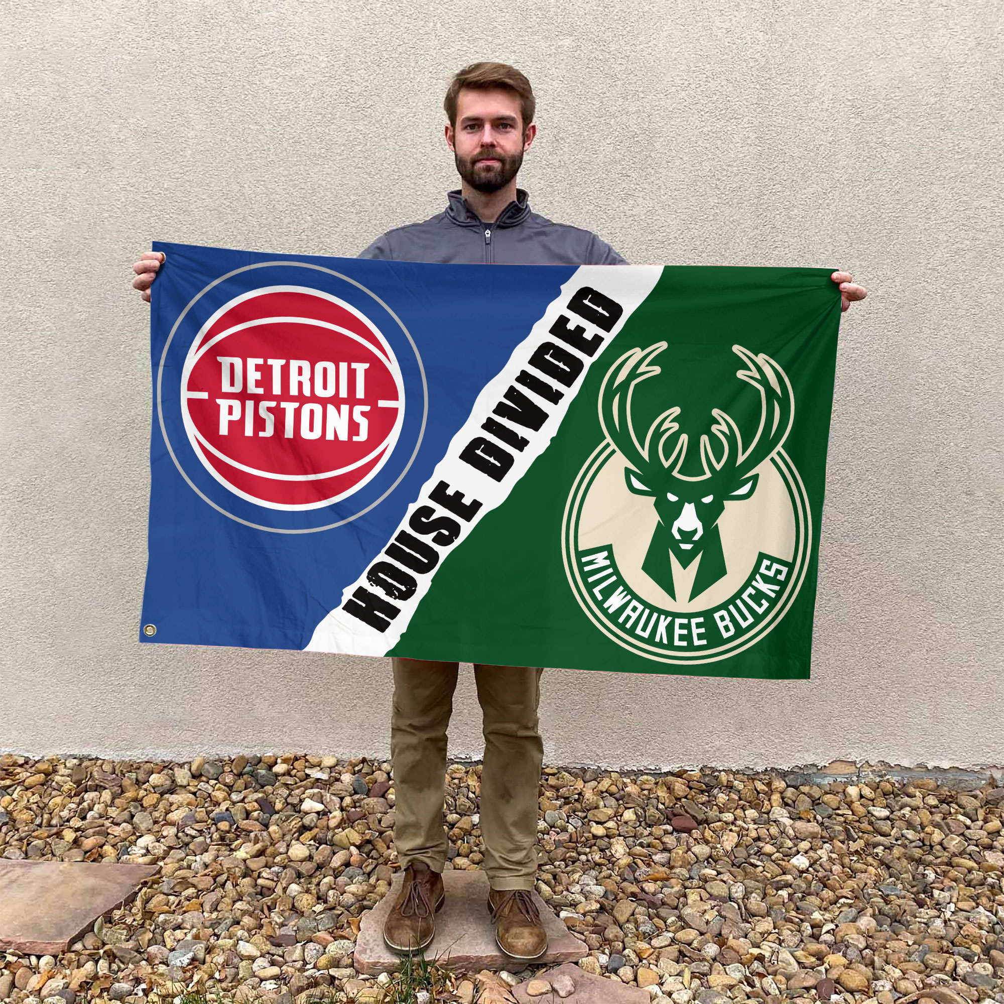 Unique House Divided Design: Featuring the Detroit Pistons and Milwaukee Bucks on opposite halves, this flag captures the essence of a true house divided, perfect for households and fans supporting both teams.