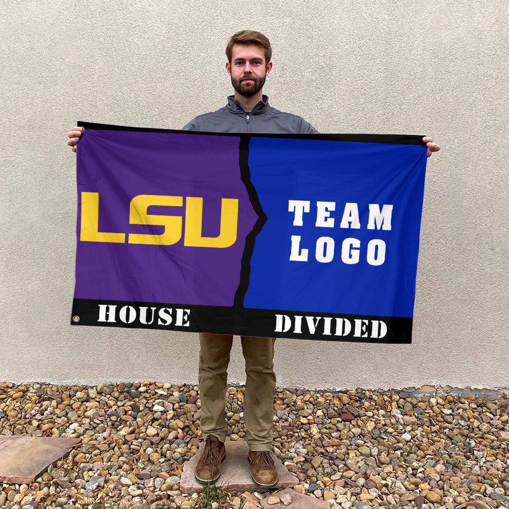 Designed for fans who want to showcase their passion, this custom house flag is part of our exclusive collection of NCAA Custom Flags. Its easy-to-hang design fits most standard flagpoles, making it a convenient and eye-catching addition to your fan gear. Whether gifting to fellow supporters or enhancing your own collection, this Fighting Tigers vs Custom Team House Divided Flag delivers exceptional quality and personalized flair that every sports enthusiast will appreciate.