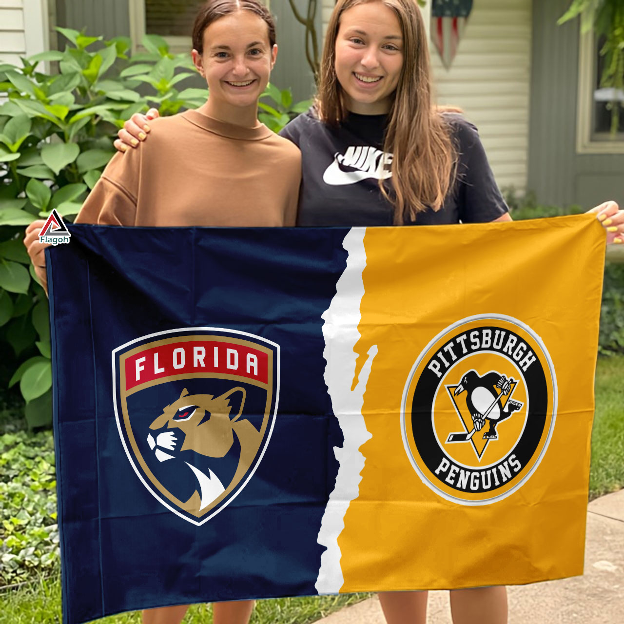 Florida Panthers vs Pittsburgh Penguins House Divided Flag, NHL House Divided Flag