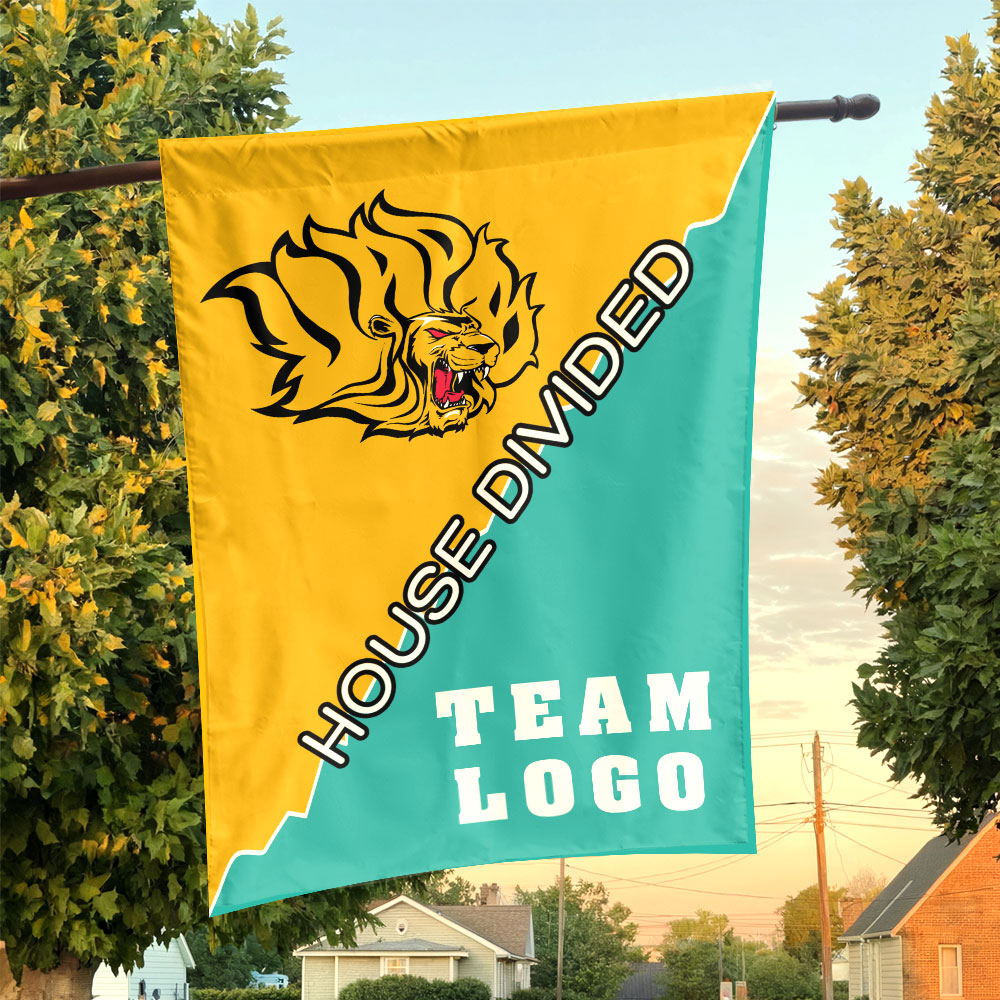 Golden Lions vs Custom Team House Divided Flag – Celebrate Rivalry in Style