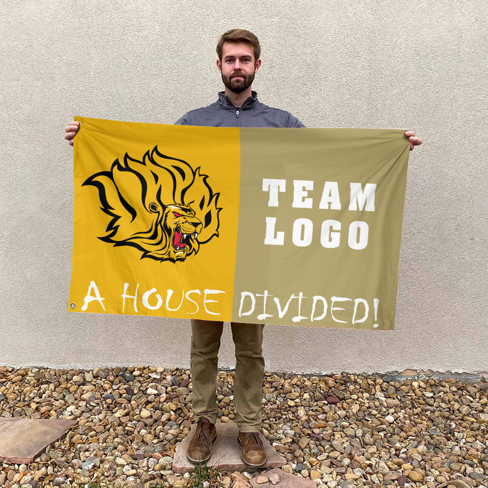 Golden Lions vs Custom Team House Divided Flag for Ultimate Rivalry Pride