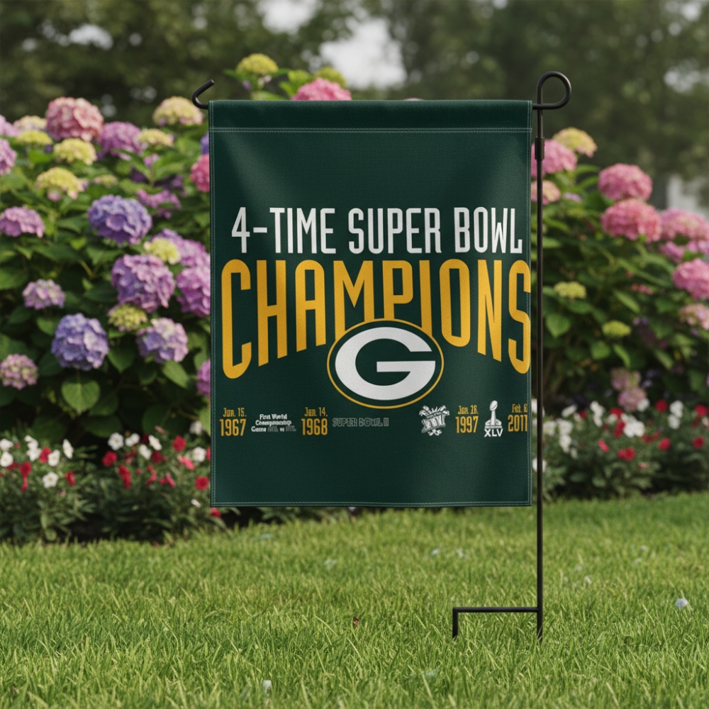Show your unwavering pride for the legendary Green Bay Packers 3×5 Flag 4 Time Super Bowl Champions, commemorating their remarkable achievement as 4-time Super Bowl champions. Crafted from durable, weather-resistant material, this flag is perfect for outdoor display at your home, tailgate, or office. Its vibrant colors and bold design ensure your support stands out, making it an essential collectible for any true Packers fan. Whether waving it on game day or showcasing it year-round, this flag brings the spirit of championship glory to any space.