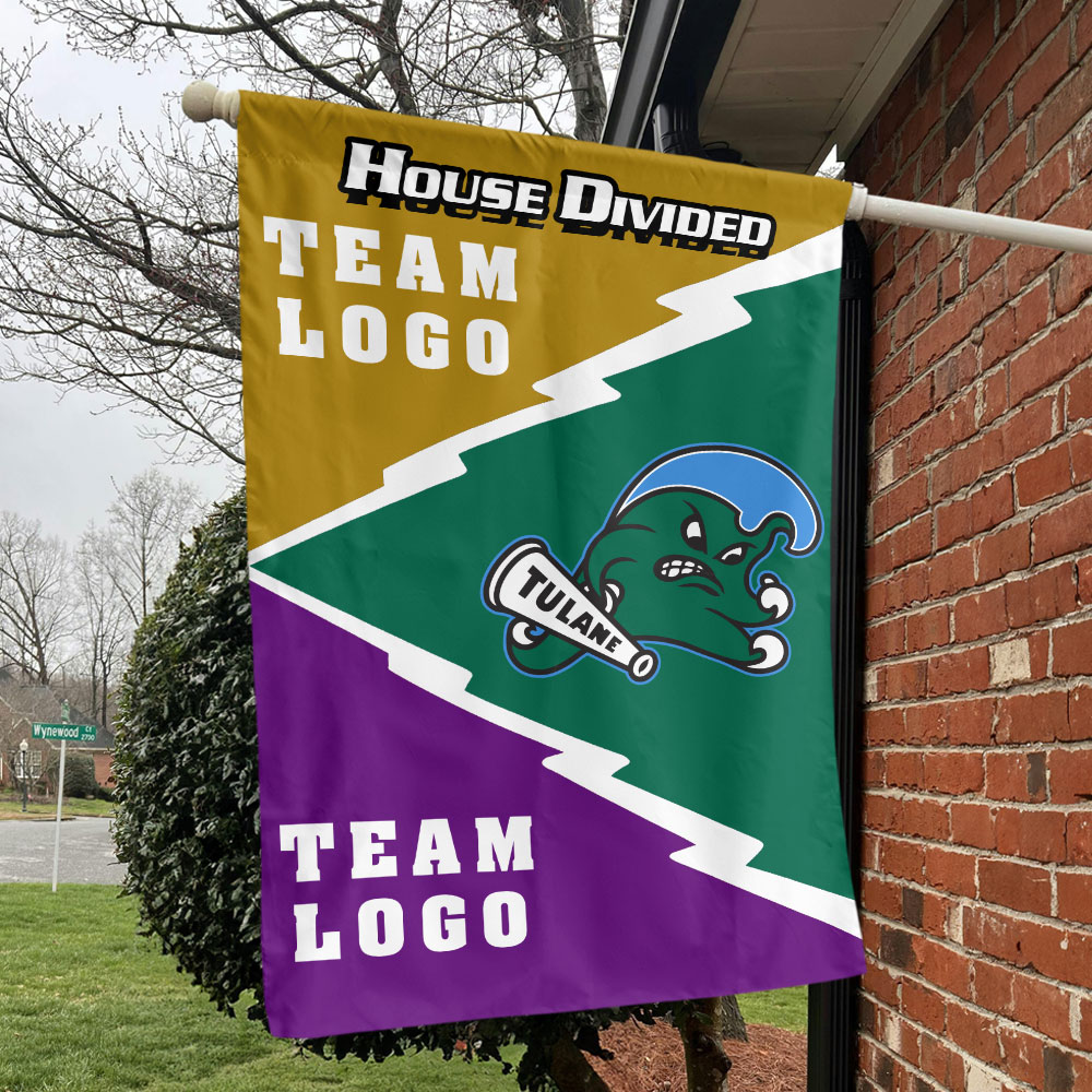 Green Wave vs Custom Team House Divided Flag Personalized NCAA Flag