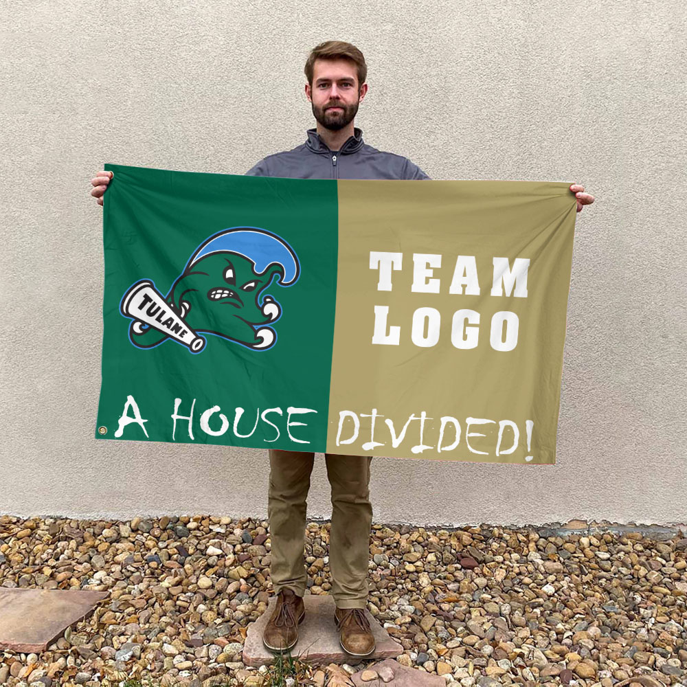 Green Wave vs Custom Team House Divided Flag – Celebrate Your Rivalry in Style