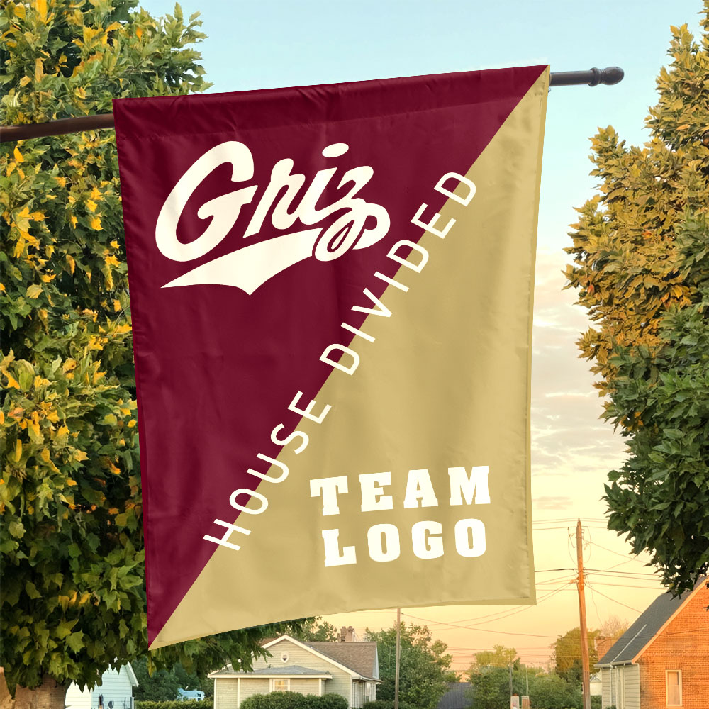 Celebrate your passion for college sports with the Grizzlies vs Custom Team House Divided Flag. This personalized split flag is expertly crafted to display your loyalty to two favorite teams in one bold design. Made from durable, weather-resistant materials, it’s perfect for both indoor and outdoor use, ensuring vibrant colors and lasting quality. Whether hung in your game room or outside your home, this unique flag adds a dynamic and spirited touch to your fan collection. Show off your dual-team pride with a custom flag that stands out and sparks conversation.