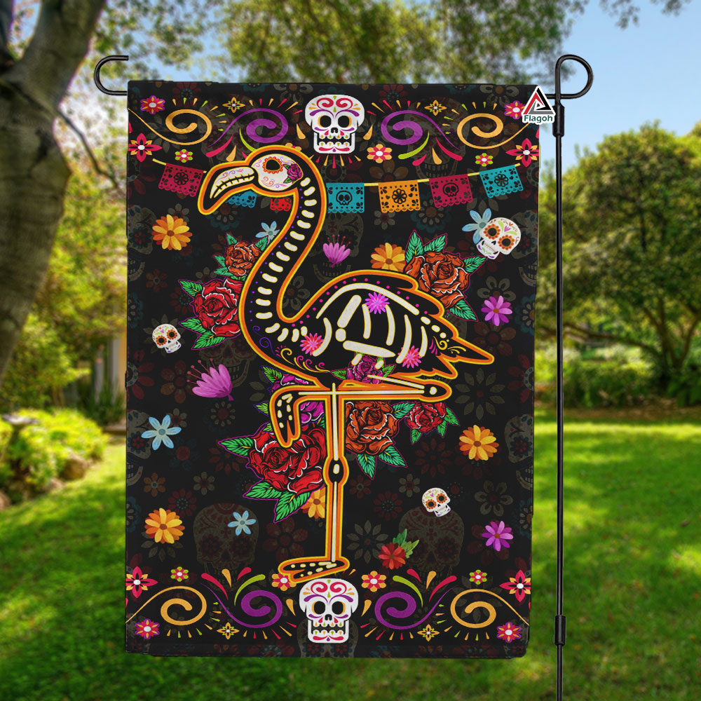Halloween Skeleton Flamingo Garden Flag, Happy Flamingoween Flag