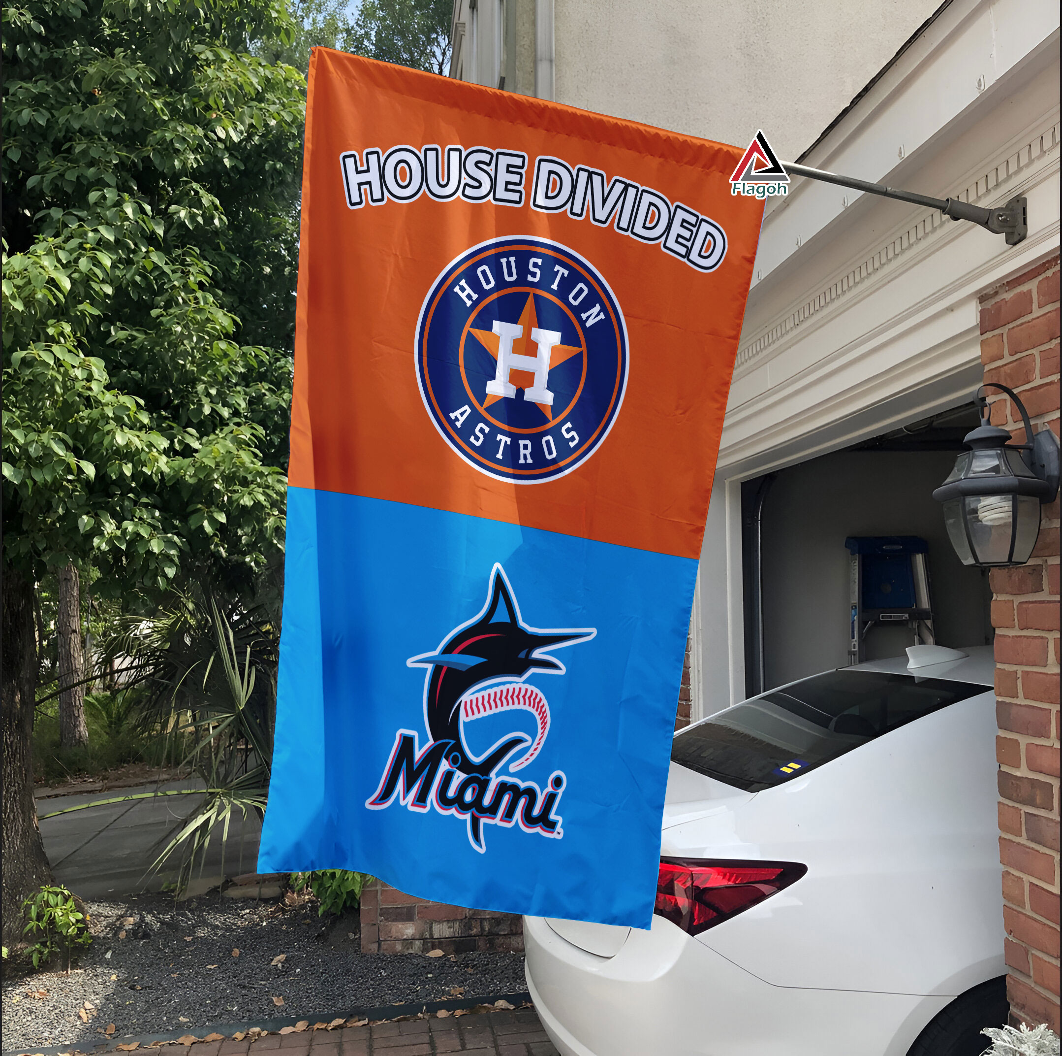 Houston Astros vs Miami Marlins House Divided Flag, MLB House Divided Flag