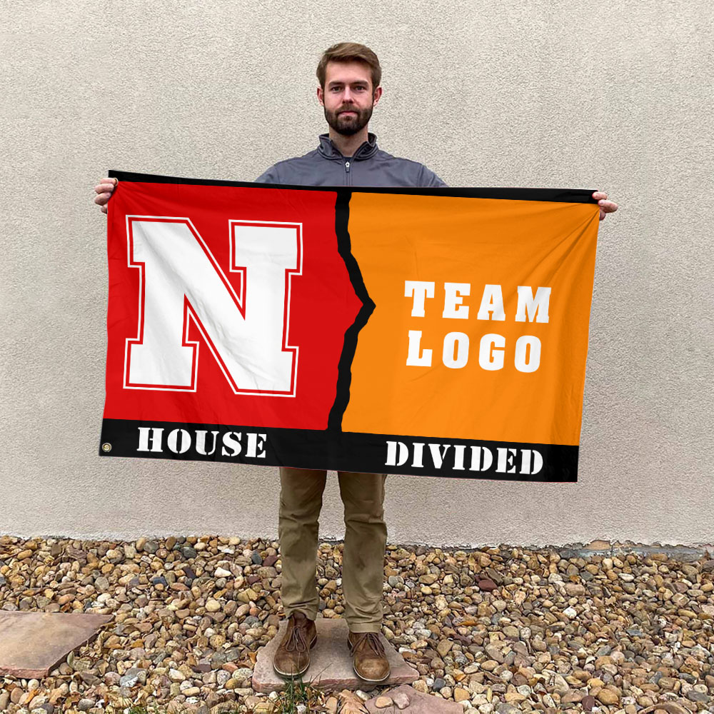 Huskers vs Custom Team House Divided Flag, Personalized House Flag