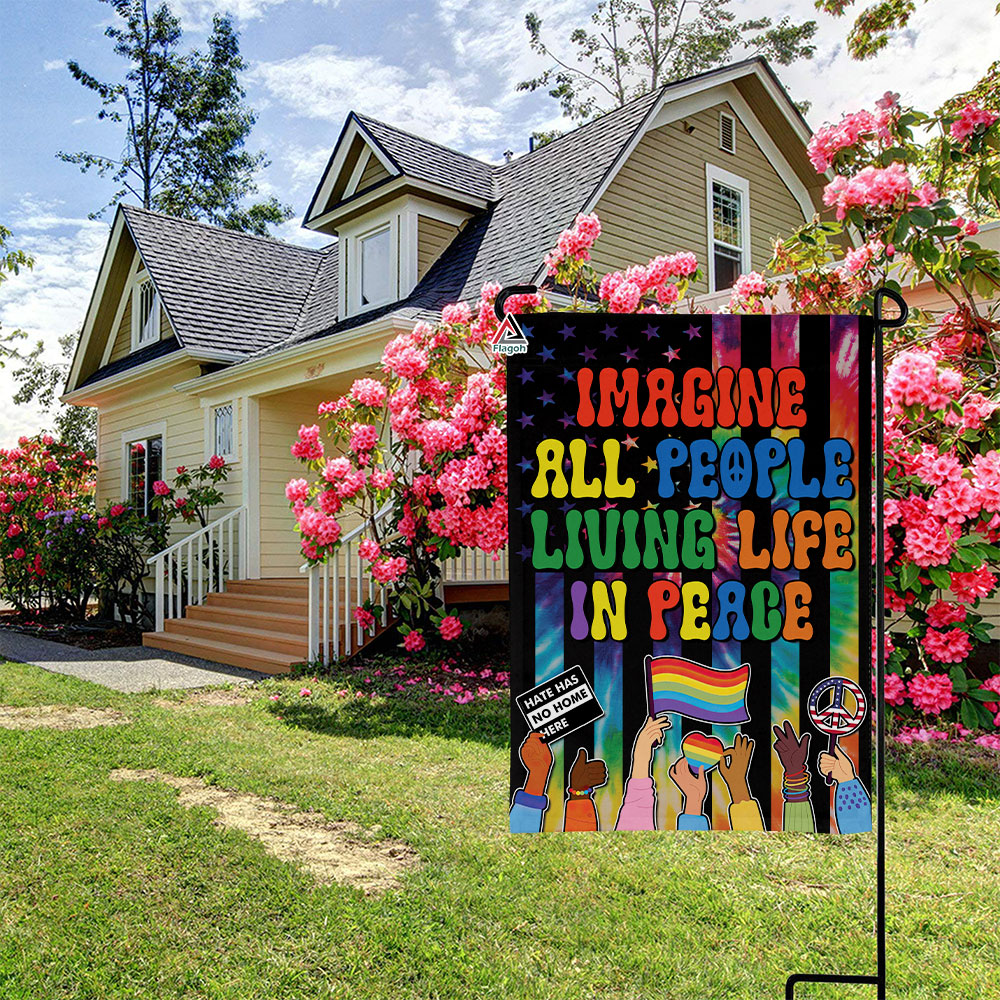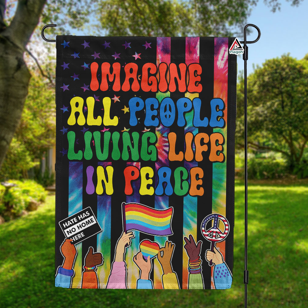 Imagine All The People Living Life In Peace Flag, American Peace Hippie Flag