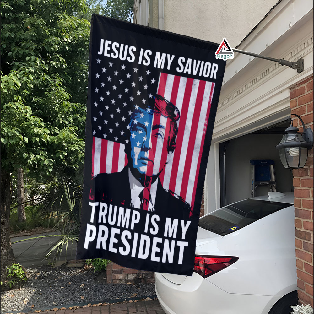 Jesus Is My Savior Trump Is My President Flag, Support Trump 2024 House Flag