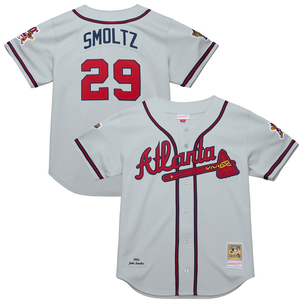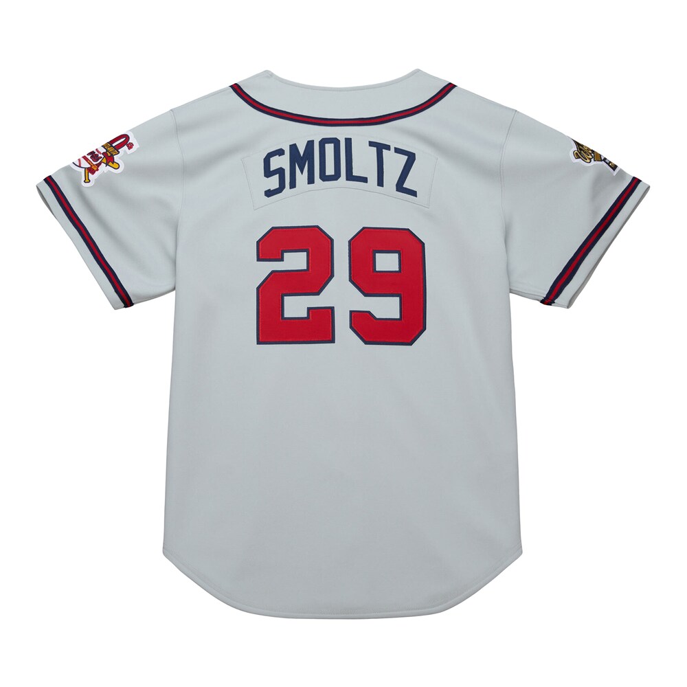 Celebrate baseball history with the John Smoltz Atlanta Braves Mitchell & Ness 1995 Throwback Authentic Jersey in gray. Crafted for fans seeking limited replica quality, this jersey offers unmatched comfort and authentic detailing that honors a legendary era. Perfect for game days or casual wear, it’s a must-have addition to your collection. Explore more iconic styles in our MLB Jerseys selection and show your true Braves pride.