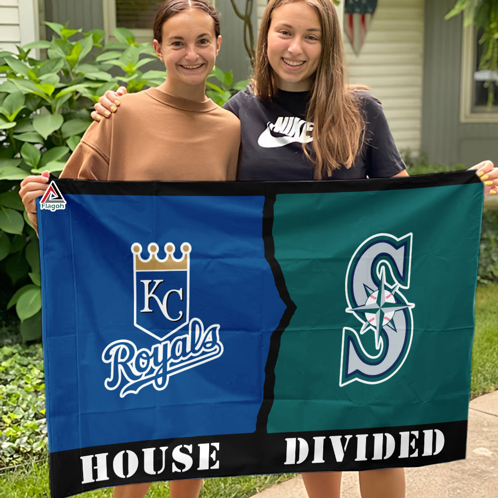 Kansas City Royals vs Seattle Mariners House Divided Flag, MLB House Divided Flag