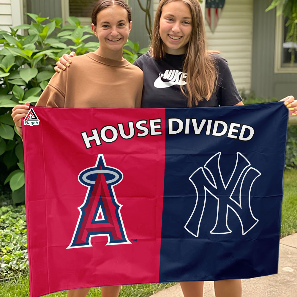 Los Angeles Angels vs New York Yankees House Divided Flag, MLB House Divided Flag