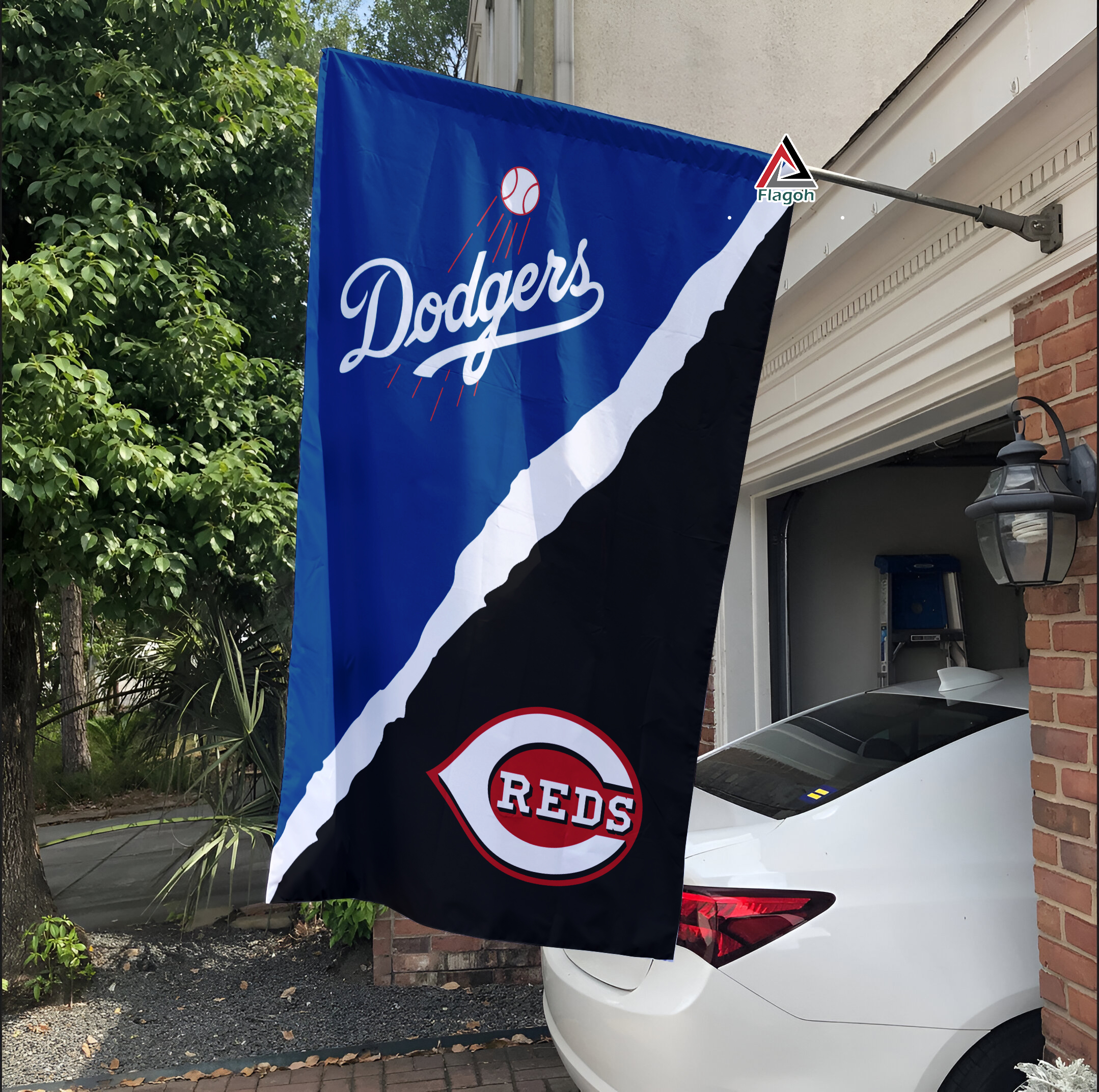 Los Angeles Dodgers vs Cincinnati Reds House Divided Flag, MLB House Divided Flag