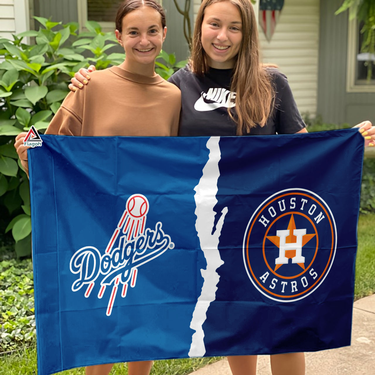 Los Angeles Dodgers vs Houston Astros House Divided Flag, MLB House Divided Flag