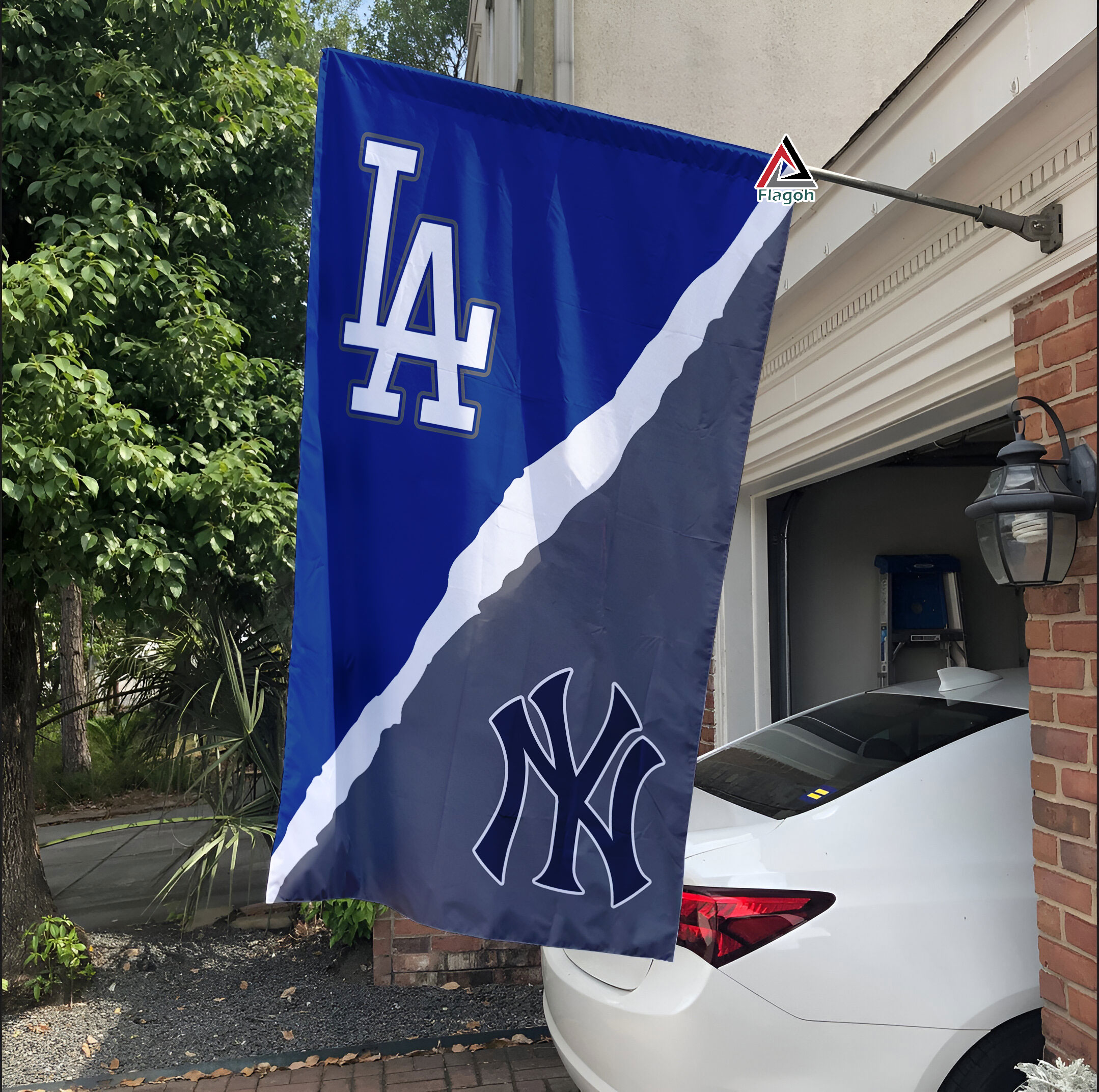 Los Angeles Dodgers vs New York Yankees House Divided Flag, MLB House Divided Flag